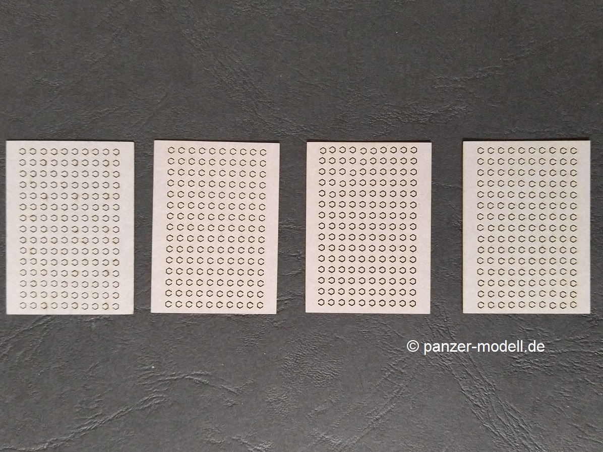 - 4 Stück Lasercut-Papierbogen ca. 5,5 x 4,0cm und einer Stärke von ca. 0,5mm mit 150 Teilen für die Bolzen der Stützpfeiler