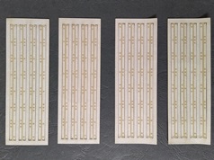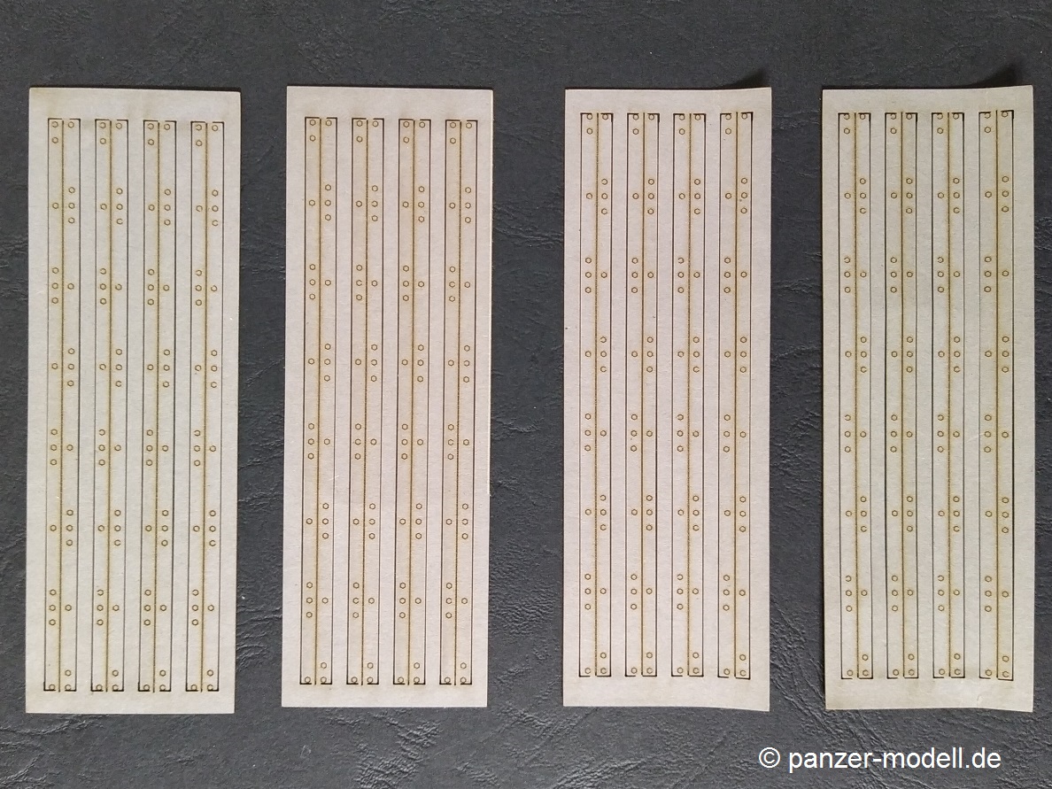 - 4 Stück Lasercut-Papierbogen ca. 12,0 x 4,0cm und einer Stärke von ca. 0,5mm mit 4 Teilen für die Außenstruktur der Stützpfeiler
