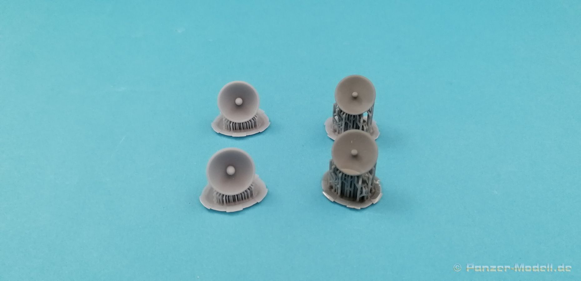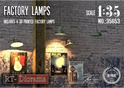 Ein weiteres kleines Set für die Ausgestaltung von Dios bietet uns RT mit den Fabriklampen an. Vier Lampen gibt die stabile kleine Kartonbox frei. - Zwei Industrielampen zur Wandbefestigung und - zwei Hängelampen. .Angesiedelt schon in den Zwanzigern bis in die Sechziger ist das Set universell einsetzbar. Vereinzelt, vor allem in den Neuen Bundesländern finden sich diese Art von Lampen vereinzelt immer noch. Alle Lampen sind top umgesetzt. Raster, Schichten etc. finden sich keine. Die typischen Lampenschirme sind sehr gut umgesetzt und stimmig. Die gedruckten Teile bestehen aus Resin. Alle Füßchen lassen sich sehr leicht entfernen. Die Montage erfolgt mit Sekundenkleber. Top Idee, ausgezeichnet umgesetzt Ein tolles Set für Dioramenbauer! Sehr empfehlenswert.