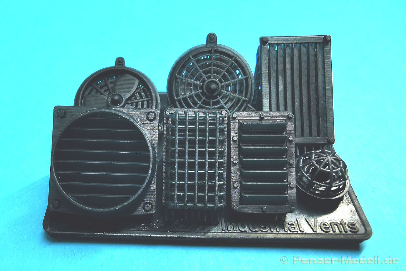 Die Fertigungsqualität der, im 3D-Druckverfahren hergestellten Bauteile ist durchweg als sehr hochwertig zu bezeichnen. Scharfkantiger und sauberer Druck, sehr detailliert und wirklich extrem fein dargestellte Details. Das ist wirklich erstklassig gemacht. Eine Bauanleitung gibt es nicht, die ist aber auch absolut nicht nötig. Das Deckelbild auf dem Karton zeigt den fertig montierte und bereits bemalten Inhalt des Sets. Unbedingte Kaufempfehlung für diesen tollen Zubehörteile die in einem Industrie-Diorama zum Blickfang werden. Wir bedanken uns bei Rudi Theunissen für den Musterbausatz!