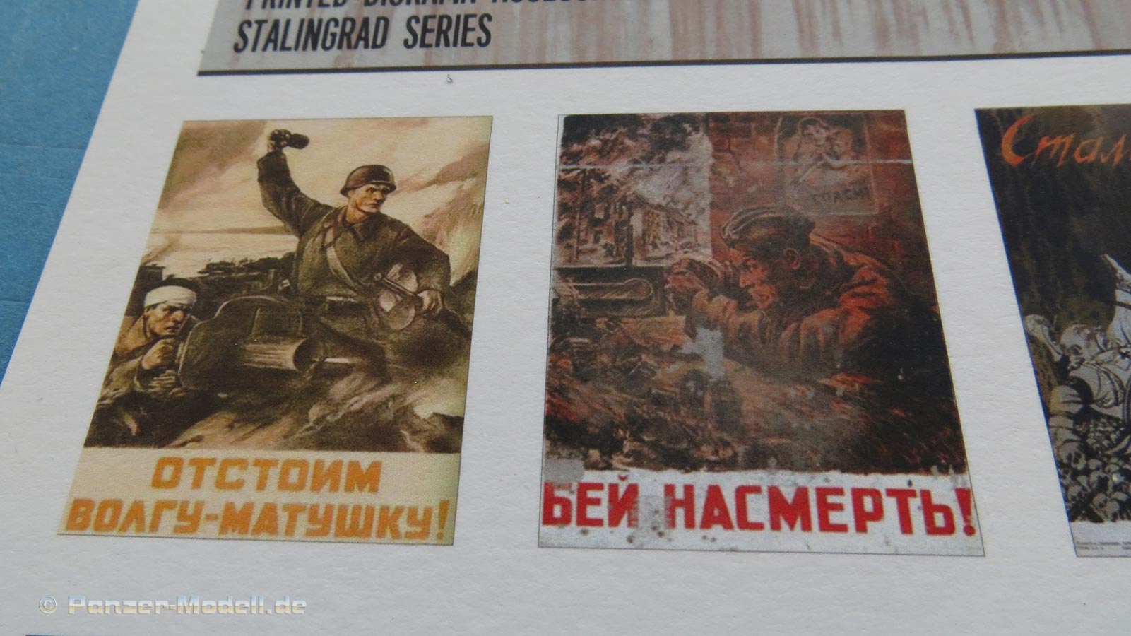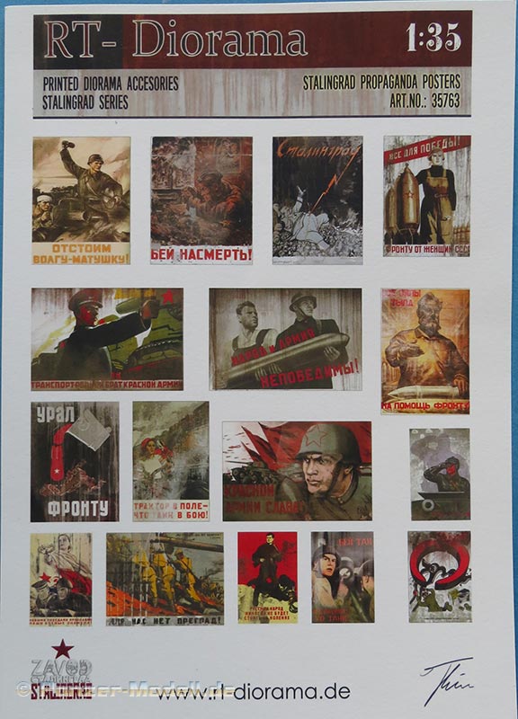 RT Diorama bietet neben sehr schönen Dioramen und Gebäuden eben auch besagte, passende Poszer an, in diesem Fall in der Stalingrad Serie Propaganda Poster für Mauern und Häuserwände der umkämpften Stadt an der Wolga und ein Großteil der Poster lässt sich mit Sicherheit auch für andere Stadtszenarien an der Ostfront nutzen.