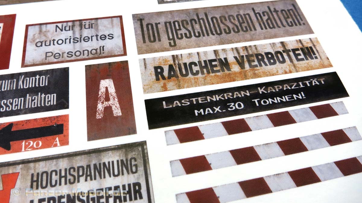 Ein schönes Set in exzellenter Druckqualität, das entsprechende Fabriken/Hallen mit den passenden Details versorgt, ohne dass man die Schilder noch selbst verwittern muss.