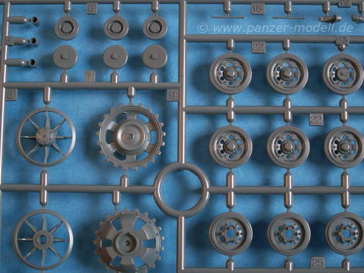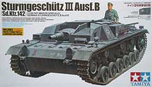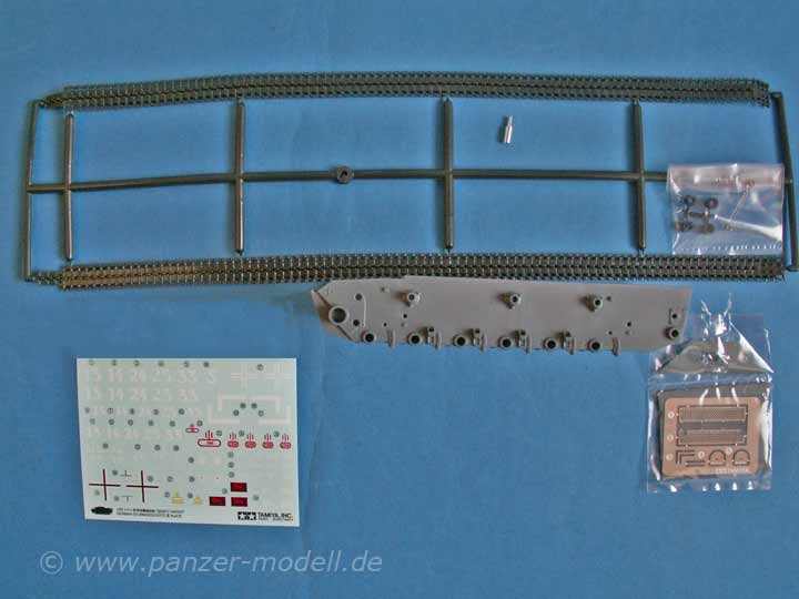 Im Vertrieb von Dickie-Tamiya Zum Jahreswechsel 2005/06 kommt Tamiya mit einem neuen Modell in 1/35 auf den Markt, nämlich mit der Nummer 35281 das StuG III Ausf.B.Wer hätte gedacht, dass Tamiya nun gerade mit solch einem Modell kommt, aber warum nicht. Immerhin kann man beim Blick in den Karton konstatieren, dass Tamiya sich auch weiterentwickelt hat. neben der bewährten Qualität gibt es nun Zubehör im Karton für das man früher noch teuer bezahlen musste. Doch der Reihe nach. Im Karton finden sich 4 Spritzlinge, eine Unterwanne, zwei Vinylketten, Polycaps, PE Teile, ein Alu-Rohr und neben der Bauanleitung auch eine farbig gedruckte vierseitige DIN A4 Anleitung für Bemalungs- bzw. Markierungsvarianten! Die Spritzgussteile erfreuen sich der bewährten und guten Tamiya Qualität, da gibt es absolut nichts zu kritisieren. Bemerkenswerterweise gibt es hier sogar einen Innenraum, der nicht nur rudimentär ist, sondern schon recht eindrucksvoll mit Boden, Rückwand (mit Handgranaten in Halterungen), sowie ausreichender Kanonenlagerung mit Richtschützensitz und Richtmitteln. Ausserdem erfreut eine Kommandantenfigur in feiner Qualität das Auge. Besonders erwähnenswert, dass Tamiya jetzt eben auch ein Alu-Rohr beilegt, das sogar Felder und Züge im Inneren aufweist, was bei vielen Alurohren derzeit nicht unbedingt der Fall ist. Auch die Beilage der Lüftergitter und der Lampenabdeckungen vorn sind ein großer Schritt auf den Modellbauer zu! Einzig die Vinylketten finde ich nicht mehr zeitgemäß, da es einfach schlecht möglich ist hier den Kettendurchhang darzustellen - dafür ist die Montage natürlich um so einfacher. Die Bauanleitung ist umfangreich, detailiert und einfach gut verständlich ausgeführt - hier sollte es keine Probleme geben. Die Bemalungs/Markierungsanleitung und der Decalbogen erlauben diverse Fahrzeuge zu markieren - hauptsächlich der 192.StuG Abteilung, mit Abzeichen für die 3 Kompanien. Desweiteren die StuG Abt.243 in zwei Varianten, StuG Abt.226 und StuG Abt.191 - diese Auswahl ist ein weiteres großes Plus. Das ganze für einen Preis von knapp 30 Euro - hier kann man bedenkenlos zuschlagen. Das Modell ist bei dem Modellbaufachhändler eures Vertrauens zu bekommen. |