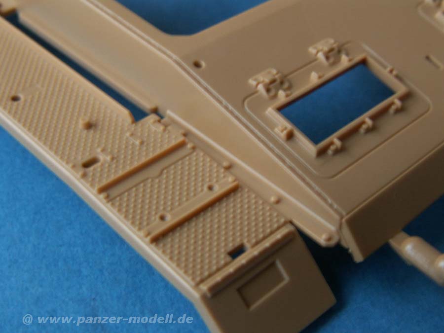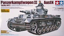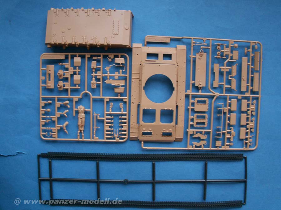 Im Vertrieb von Dickie-Tamiya Tamiya ist immer für eine Überraschung und so kommt mit der Nummer 35290 ein Panzer III Ausf.N.In bester Tamiya-Manier finden sich im Karton 6 Spritzlinge, die Unterwanne, Vinylketten, PE Teile, ein Alu-Rohr und natürlich ein Decal Bogen. Tamiya geht den eingeschlagenen, guten Weg, weiter und spendiert den Bausätzen jetzt gleich einen Basis PE Satz, der hier die Lüftergitter umfasst und in diesem Fall sogar ein schickes Alu-Rohr. Die Spritzguss-Teile sind sehr schön und extrem sauber, wie man es von Tamiya gewohnt ist. Alle Teile sind neu entworfen und kein Wiederaufguss alter Bausatzteile!Die Detailierung kann mal als gut bezeichnen, wennauch im direkten Vergleich z.B. der Cyber Hobby Bausatz der Panzer III N stellenweise noch detailierter ist, wie z.B. die Senkkopfschrauben im Turmdach oder die Aufdrucke auf den Laufrollengummis. Die Vinylketten sehen sehr gut aus, lassen allerdings leider keinen Kettendurchhang zu, wie es mit Einzelgliedketten möglich wäre. Positiv fällt wieder auf, dass Tamiya verschiedene Versionen des Panzer III N möglich macht (wennauch nur in Details) und vor allem Kommandantenfiguren (2 Stück) beilegt - etwas das vielen anderen Herstellern noch fehlt! Die Schwingarme werden einzeln in die Wanne eingesetzt und bieten somit auch die Möglichkeit Unebenheiten eines Dioramas einzuarbeiten. Zudem kann die Wanne mit oder ohne seitliche Notausstiegsluken gebaut werden. Der Panzer basiert übrigens auf der Wanne ohne den Tiefwat-Auspuff - schade dass man dies nicht als Optionsteile beigelegt hat. Alle Luken - auch die des Motorraums - sind offen darstellbar, auch wenn es keinen Innenraum dahinter gibt - nur der Turm weist rudimentäre Inneneinrichtung auf mit dem Innenleben der Kanone. Die Kanone an sich ist als Alurohr ausgeführt mit Feldern und Zügen - exzellent. Die Bauanleitung ist sehr gut und verständlich ausgeführt, wie man es von Tamiya gewohnt ist - hier sollte es absolut keine Probleme geben, ganz besonders weil auf verschiedene Versionen und deren Optionsteile explizit hingewiesen ... bei anderen Herstellern leider nicht unbedingt gang und gäbe ist. Ausserdem wird mit viel Zusatzinformationen (mehrsprachig) zum Panzer und den Einheiten aufgewartet. Die Bemalungs/Markierungsanleitung steht mit drei Markierungsvarianten zur Verfügung: - 1.Kp, sPz.Abt.502 Leningrad, Winter 1942-43 - 8.Pz.Rgt., 15.Pz.Div. Tunesien, 1943 - 11.Pz.Rgt., 6.PzDiv., Kursk, Sommer 1943 Eine schöne Auflage dieses charismatischen Panzer III mit tamiya-typischer, super Passqualität und guten Details. Kostenpunkt etwa 42 Euro - nicht billig, aber immer noch um einiges billiger als das Cyber-Hobby Pendant. Das Modell ist bei dem Modellbaufachhändler eures Vertrauens zu bekommen. |