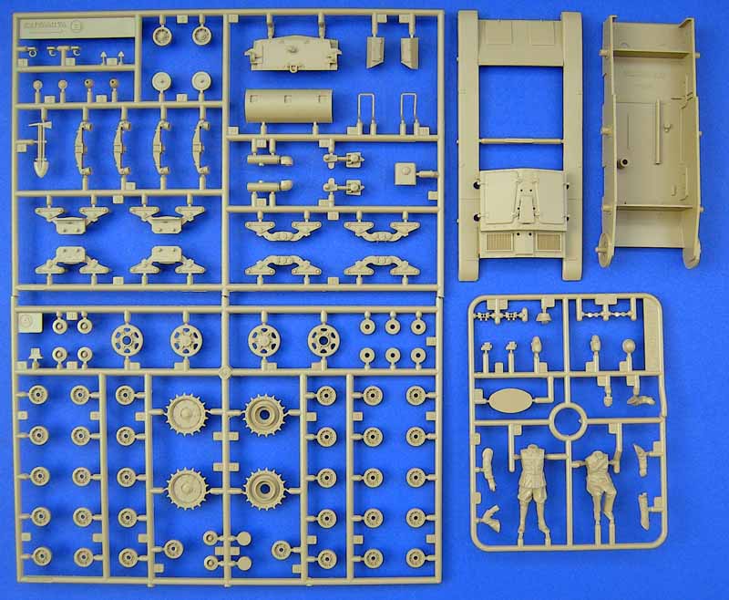 Im Vertrieb von Dickie-Tamiya Mit der Nummer 35296 hat Tamiya den Carro Armato M13/40 herausgebracht.Sehr gut kann ich mich noch an meine Anfangszeit im Plastikmodellbau erinnern. Einer meiner ersten Bausätze war seinerzeit der Tamiya Carro Armato M13/40. Wer aber nun glaubt dass es sich bei dem jetzigen Modell dieses italienischen Panzers um eine Wiederauflage des Bausatzes aus dem Jahr 1974 handelt, liegt daneben. Denn durch Zugabe neuer Bauteile wurde das Modell auf den heutigen Stand der Technik gebracht. So erhielt das Modell zwei neue Figuren, einen neuen Spritzrahmen mit Werkzeugen und Zubehör, ein feines Aluminiumrohr für die Bordkanone und eine kleine Platine mit sinnvollen Photoätzteilen. Und das ist noch längst nicht alles. Denn sogar an eine neue Kette wurde gedacht. Diese besteht aus unterschiedlich langen Segmenten und Einzelgliedern. Für die Rundung der Kette am Laufwerk liegen Segmente mit je zwei, bereits vorgebogenen, Gliedern bei so dass die Montage erheblich erleichtert wird. Insgesamt finden sich hier nun satte 7 Spritzrahmen, je ein Wannenober- und 1 Unterteil, 4 Polycaps, ein Bindfaden zur Darstellung des Abschleppseils, das bereits angesprochene Aluminiumrohr, die Platine mit PE-Teilen und ein Decalbogen. Dieser beinhaltet Markierungsmöglichkeiten für zwei italienische Fahrzeuge und einen australischen Panzer im Einsatz in Nordafrika und rundet diesen schönen Bausatz angemessen ab. Pimp my Panzer! Durch die beigelegten Zusatzteile wird dieser Bausatz so deutlich aufgewertet dass er absolut auf dem Stand der heutigen Spritzgusstechnik liegt und damit allen Freunden der italienischen Panzer des WK II empfohlen werden kann. Vergleicht man nun beispielsweise die Ausführung der "alten" Figur mit den beigelegten "neuen" Panzermännern so wird die technische Weiterentwicklung der letzten 30 Jahre besonders deutlich sichtbar. Alles in allem ist auch die Qualität der ursprünglichen Bauteile auf sehr hohem Niveau so dass ich ihn uneingeschränkt empfehlen kann. Das Modell ist bei dem Modellbaufachhändler eures Vertrauens zu bekommen. |