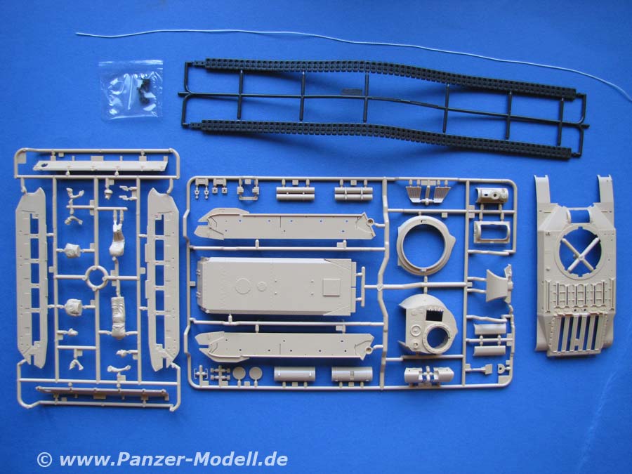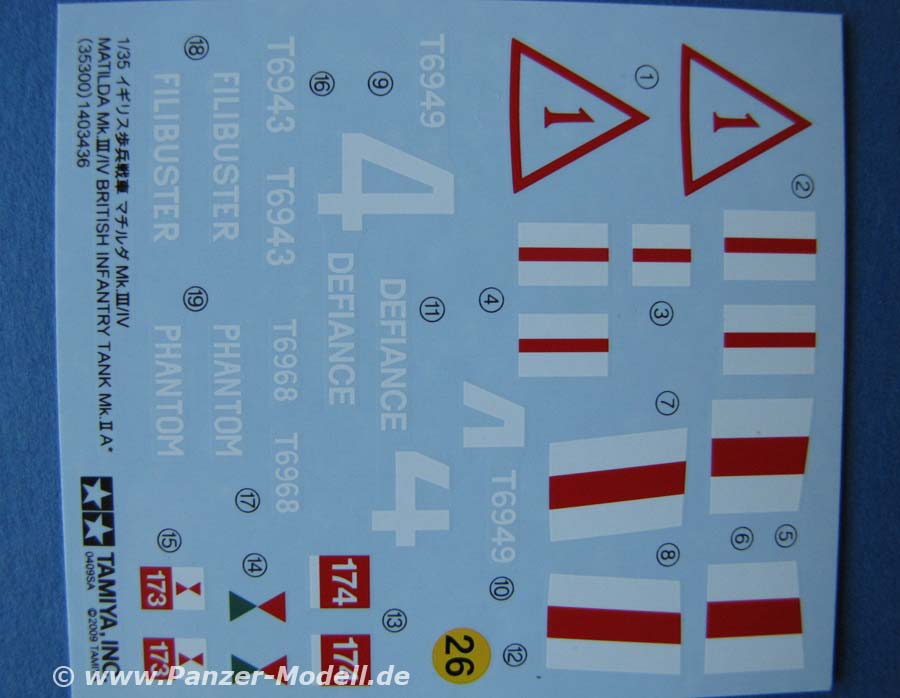 Im Vertrieb von Dickie-Tamiya Mit der Jubiläums-Nummer 35300 hat Tamiya die Matilda Mk.III/IV herausgebracht.Im Karton finden sich 5 Spritzlinge, die Oberwanne, Seilmaterial, Vinylketten, Polycaps und natürlich ein Decal Bogen. Dieses Modell hat so rein gar nichts mehr mit dem vor x Jahren erschienenen Matilda von tamiya zu tun - es wurde alles neu gemacht - und das mit wirklich schönen Details. Ebenfalls positiv hervorheben möchte ich, dass 3 Figuren für den Panzer beiliegen - so etwas lassen viele andere herstelelr imme rnoch vermissen!. Zur Darstellung der Kette gibt es eine Plastikspritzgusskette die aus verschiedenen langen Kettenteilen und Einzelgliedern besteht - diese sieht ganz gut aus - weist aber deutliche auswerferstellen auf den Aussenseiten auf. Wahlweise ist auch eine schöne Vinylkette enthalten, zu der ich tendieren würde. Die Teile an sich sind alle schön sauber und gut detailiert dargestellt. insbesondere die Gussstruktur z.B. am Turm ist sehr schön wiedergegeben. Das kanonenrohr der 2 Pfünder ist als einzelnes Plastikteil dargestellt - kommt zwar an Metallrohre so nicht heran, ist abe rum Längen besser als frühere Rohre die noch aus 2 Halbteilen zusammengeklebt werden mussten. Kleinteile und Zusatzaustattung des Panzers machen ebenfalls einen guten Eindruck Die Bauanleitung ist ausführlich und sehr verständlich ausgeführt, wie man es von Tamiya gewohnt ist. Die insgesamt 33 Bauabschnitte sind übersichtlich und sauber aufgebrochen und absolut einfach zu befolgen. zusätzlich gibt es einen farbig, doppelseitig bedruckten Bogen mit originalfotos von Matildas aus Museen. An Markierungen/Bemalungen für diesen Bausatz sind vorgesehen: - 42nd Royal Tank Regiment, 1st Army Tank Brigade, Nordafrika 1941 - 32nd Army Tank Brigade, Libyen 1941 - 49th Royal Tank Regiment, 35th Army Tank Brigade, England 1942 Ein wirklich schöner Bausatz, der mit Qualität und Ausstattung zu gefallen wiess - und derzeit das einzig gute Modell einer Matilda am Markt ist. Der Preis des ganzen liegt bei etwa 33 Euro. Das Modell ist bei dem Modellbaufachhändler eures Vertrauens zu bekommen. |