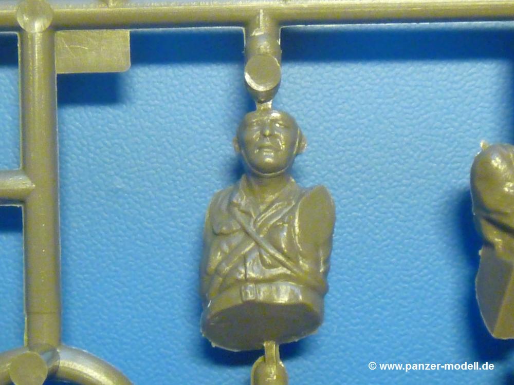 Kommen wir noch zu dem zusätzlichen Figurensatz, dem alten Bekannten, bestehend aus 1 Offizier und 3 Soldaten in Kampfposen und der entsprechenden Bewaffnung/Ausrüstung. Der Faltenwurf ist nicht ganz so schön ausgeprägt wie bei heutigen Figuren, aber immer noch im oberen, akzeptablen Bereich. An den Teilen findet man etwas mehr Grat als beim Ho-Ni, wie man auf den Übersichtsfotos bereits sehen kann.
