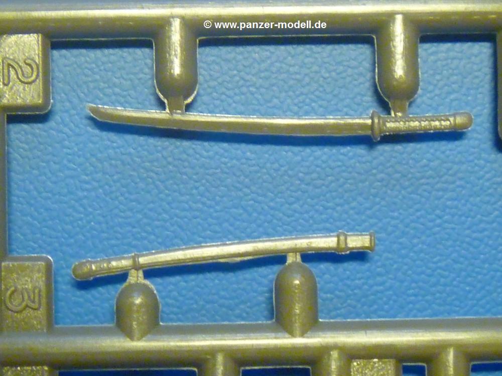 - 1x: Gewehre mit und ohne Bajonett, Bajonette, Munitionstaschen, Brotbeutel, Feldflaschen, Pistolen- und Kartentasche, Kniemörser, japanisches Schwert (Katana) mit separater Schwertscheide