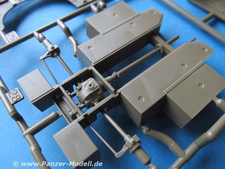 Die Unterwannen beider Fahrzeugteile sind in einem Teil gefertigt in die die Laufwerksteile und Achsen eingesetzt werden. Nach dem Zusammenbau der Vorderachse scheint ein Lenkeinschlag der Vorderräder nicht vorgesehen zu sein.