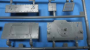 Die Wanne des Panzers setzt sich aus mehreren Einzelteilen zusammen, was aber bei der typischen Passgenauigkeit von Tamiya kein Problem darstellen sollte. Die grundsätzlichen Details sind hier bereits mit angegossen.