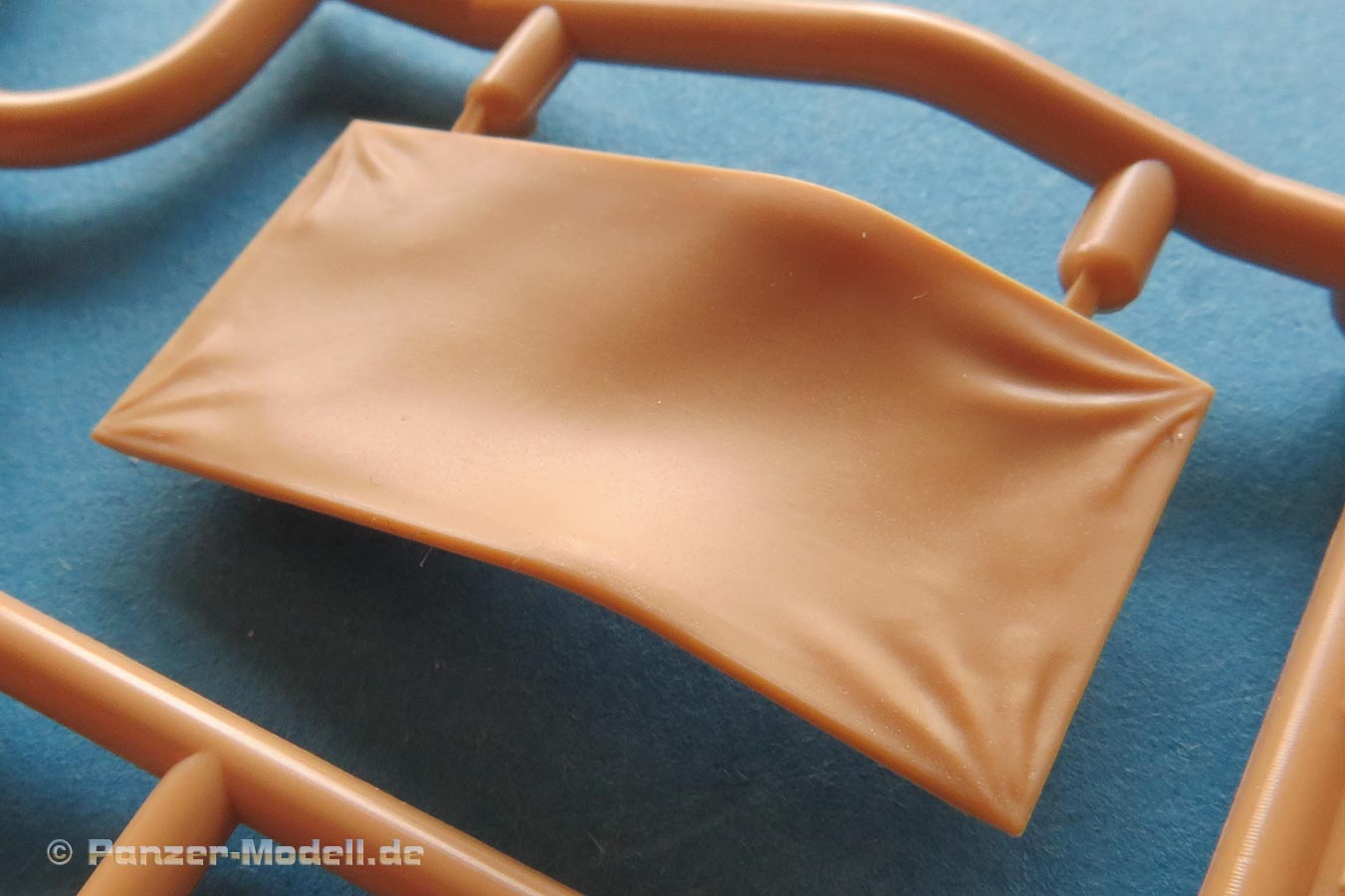 Diese baut sich aus nur wenigen Teilen zusammen und kann entweder selber mit Ladung versehen werden oder mit der beiliegenden Plane abgedeckt werden - letztere ist schln gestaltet mit dem einmodlelierten Faltenwurf.