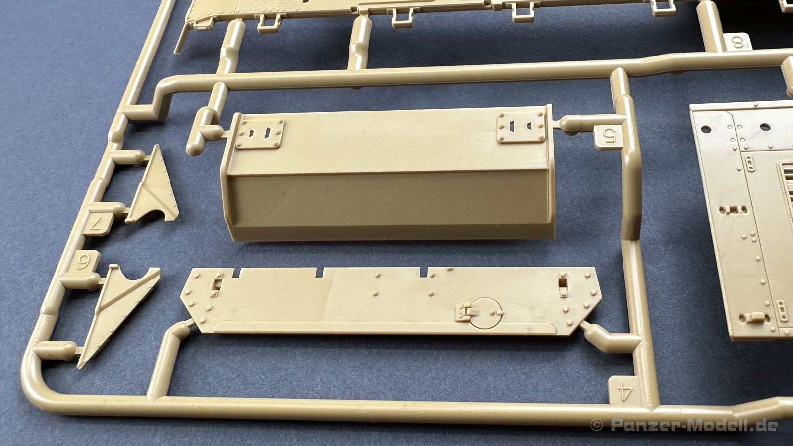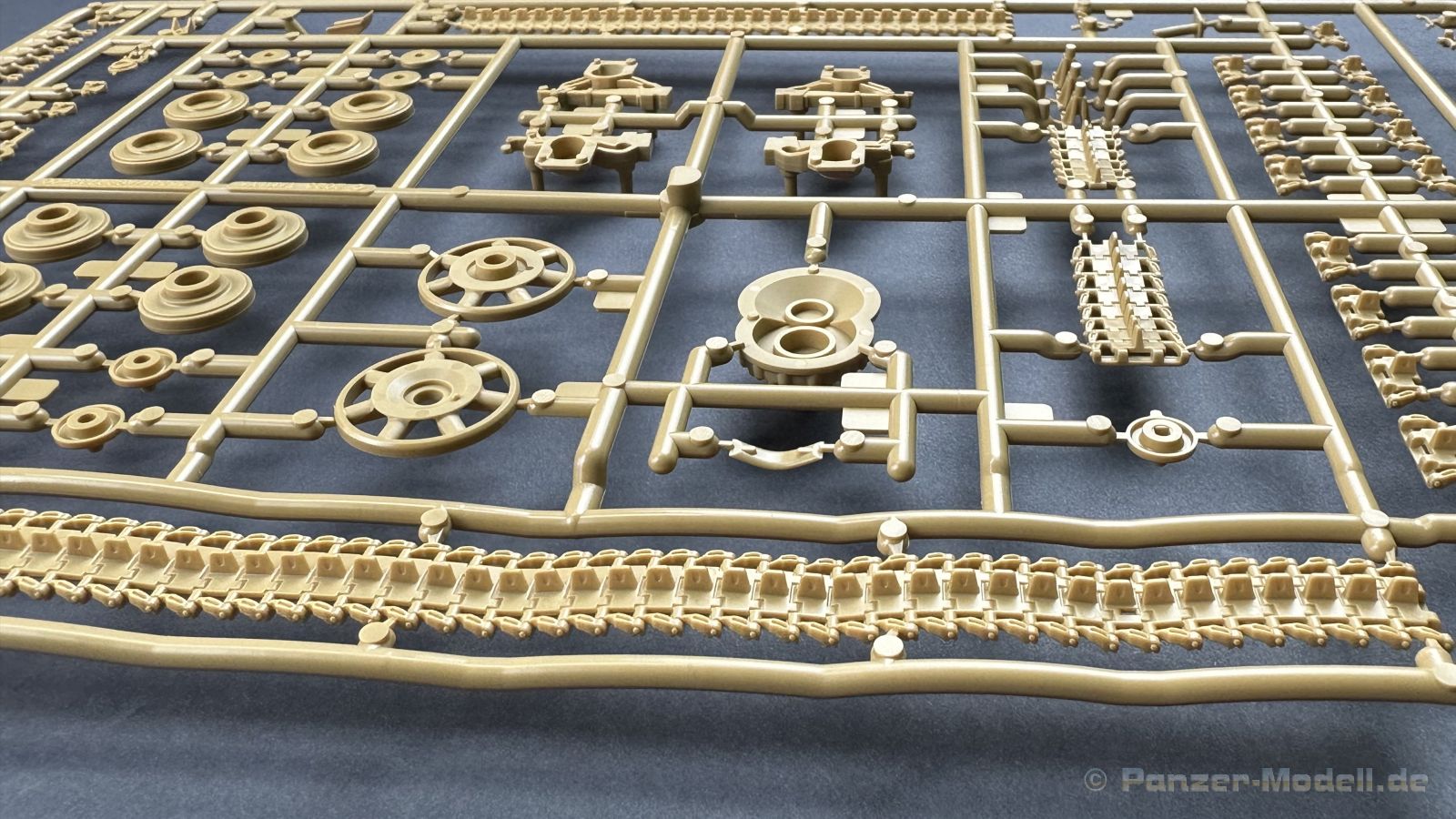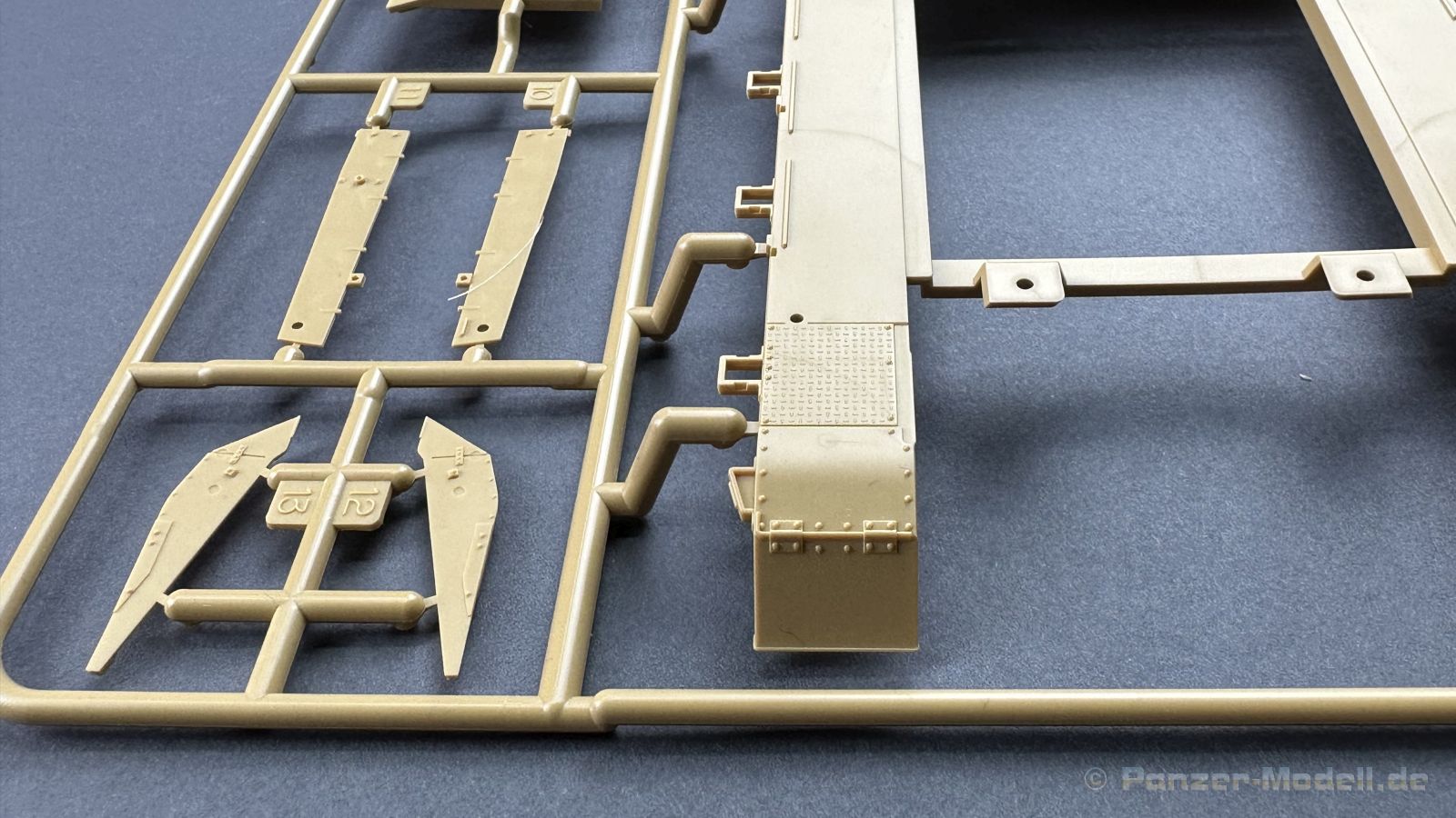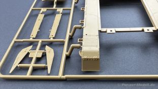 Jagdpanzer IV/70 (A) Schon vor der Spielwarenmesse wurde geleakt das Tamiya wohl einen Jagdpanzer auf Basis von ihrem Panzer IV realisieren möchte, 1-2 „verschwommene Bilder“ tauchten auch auf, aber so richtig wusste halt noch niemand wie der Panzer aussehen sollte bzw. welche Features uns wohl erwarten könnten… Das änderte sich als wir Anfang Februar die Spielwarenmesse zu Nürnberg enterten, da stand die Neuheit von Tamiya in voller Pracht! Doch Neuheit, nun ja sagen wir es einmal so: es ist nur bedingt eine Neuheit, da Teile vom Jagdpanzer vom bereits 2014 erschienen Jagdpanzer IV L70 (V) 35340 sind. Neu ist natürlich der obere Aufbau, der ja für die Alkett Version des Jagdpanzers IV angepasst worden ist und erfreulicherweise sind die übrigen Teile noch einmal einem Facelift unterzogen worden. Als Modell wird hier die Lösung von Alkett mit dem relativ hohem Aufbau dargestellt, da der Panzer IV mit dem Einbau der 7,5 cm KwK L/48 an seine Leistungsgrenze gekommen ist und aufgrund des limitierten Turmkranzdurchmesser keine größere Kanone aufnehmen konnte, wurde nach einer Lösung gesucht die leistungsstarke 7,5cm KwK L/70 zu verbauen. Mit dem Weglassen des Turmes und einer Veränderung vom Panzerkastenaufbau, ähnlich des schon bekannten Sturmgeschütz Konzeptes wurde der Jagdpanzer IV realisiert. Mit dem Bau wurde erst relativ spät begonnen, von August 1944 bis März 1945 konnten immerhin aber noch 277 Exemplare sowie ein Prototyp fertiggestellt werden. Zusammenfassend lässt sich sagen das der Jagdpanzer IV in V und A ein Erfolg war, sofern richtig eingesetzt, die relativ starke Frontpanzerung sowie die sehr starke und präzise 7,5cm L/70 standen dem völlig überlastenden vorderen Fahrwerk ( daher auch die Stahllaufrollen ) Getriebeproblemen und dem permanenten Spritmangel entgegen. Im Bausatz enthalten sind insgesamt: - 7 Spritzlinge - Ätzteilebogen für die Gitterschürzen ( Thomaschürzen ) - 3 Sorten Polycaps - Segmentkette - 1x Figur - 2x Decalvarianten Die Spritzlinge kommen in dem für späte deutsche Fahrzeuge typischen dunkelgelben/beigen Farbton daher und sind, wie es im englischen so schön heißt von den Details crisp – also absolut scharkantig abgegossen. Im allgemeinen gefallen wir die neuen Bausätze von Tamiya spitze, so wird auch hier darauf wert gelegt das wir eine Oberflächenstruktur haben die absolut angemessen ist, Schweißnähte und eine absolut durchdachte Vorgehensweise runden das Bild ab. Die Jungs von Tamiya müssen das Fahrzeug in Saumur mir Adleraugen vermessen haben, so wurden viele Merkmal exakt von diesem Fahrzeug wie die schon genannten Oberflächenstruktur übernommen, ebenso die Kette, welche eine späte, seltene Variante ist. Gut für uns, so kommt etwas Abwechslung auf den Basteltisch. Apropos Kette, hier hat Tamiya wieder sein ganzes können in die Waagschale geworfen, die Segmentkette weist Führungshilfen und eine 1a durchdachte Montage auf. Leider finden sich auf den Gummibandagen der hinteren Laufrollen keine Herstellerangaben wie Semperit, Fulda und Co auf, ich finde das könnte man in 2023 besser machen, zumal beim Original vermessen Fahrzeug in Saumur eben jene Daten zu sehen sind. Eine Figur , bzw. eine ¾ Figur liegt dem Bausatz ebenfalls bei, in Tamiya typischer Pose, relativ neu sind die modulare Bauweise ähnlich dem Dragon Gen 2 Konzept, ist zwar ein wenig aufwendiger, aber das Ergebnis ist dadurch wesentlich besser. Die Anleitung gibt insgesamt 33 Baustufen vor. Leider spendiert Tamiya nur 2 Decalvarianten, die da wären: - A 106th Panzer Brigade Western Front, Late 1944 in Dreifarbtarnung / Hinterhalt - B 17th Panzer Division, Eastern Front 1945 Dreifarbtarnung Zu finden sind die beiden Bemal Vorschläge auf einem separaten Bogen, der auch Hintergrundinformation ( in Deutsch, Englisch, Französisch und Japanisch ) sowie einige Bilder, ja sogar Bilder in Farbe enthält. Im Allgemeinen kann man die Anleitung von Tamiya gar nicht oft genug loben, alles bestens erklärt, mit Bildern untermalt und an vermeintlich kniffeligen Stellen nochmals als Bild oder Zeichnung untermauert. Das Kanonenrohr für die L/70 liegt als einteiligen in Kunststoff gespritztes teil bei das mit einem , zum Stück hohl gegossen End teil montiert werden muss. Erwähnenswert sind die Gitterschürzen die hier als Ätzteil auf einem , für Tamiya eher untypischen , großen Bogen daher kommen, absolut lobenswert!! Tamiya hat sich, zumindest auf dem Papier, schlüssige Konzept überlegt, wie man die Ätzteile mit den Kunststoffteilen verbinden kann überlegt. Die Praxis wird zeigen, ob das gut funktioniert oder ähnlich kompliziert wird wie bei Dragon damals Ich denke in der Zusammenfassung lässt sich sagen das dem geneigten Modellbauer hier ein Modell an die Hand gegeben wird, das sich A gut bauen lassen sollte, B gut recheriert ist und sich aufgrund der Beigaben so aus der Schachtel bauen lassen sollte. 2 minimale Minuspunkte möchte ich nicht unerwähnt lassen, lediglich 2 Decalvarianten und das fehlen von Details auf den Gummibandagen Absolut löblich ist der Preis, zumindest jetzt bei Erscheinen An dieser Stelle möchte ich mich bei Tamiya / Deutschland bedanken die uns hier das Muster zur Verfügung gestellt haben.