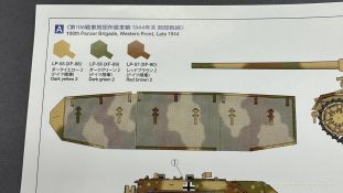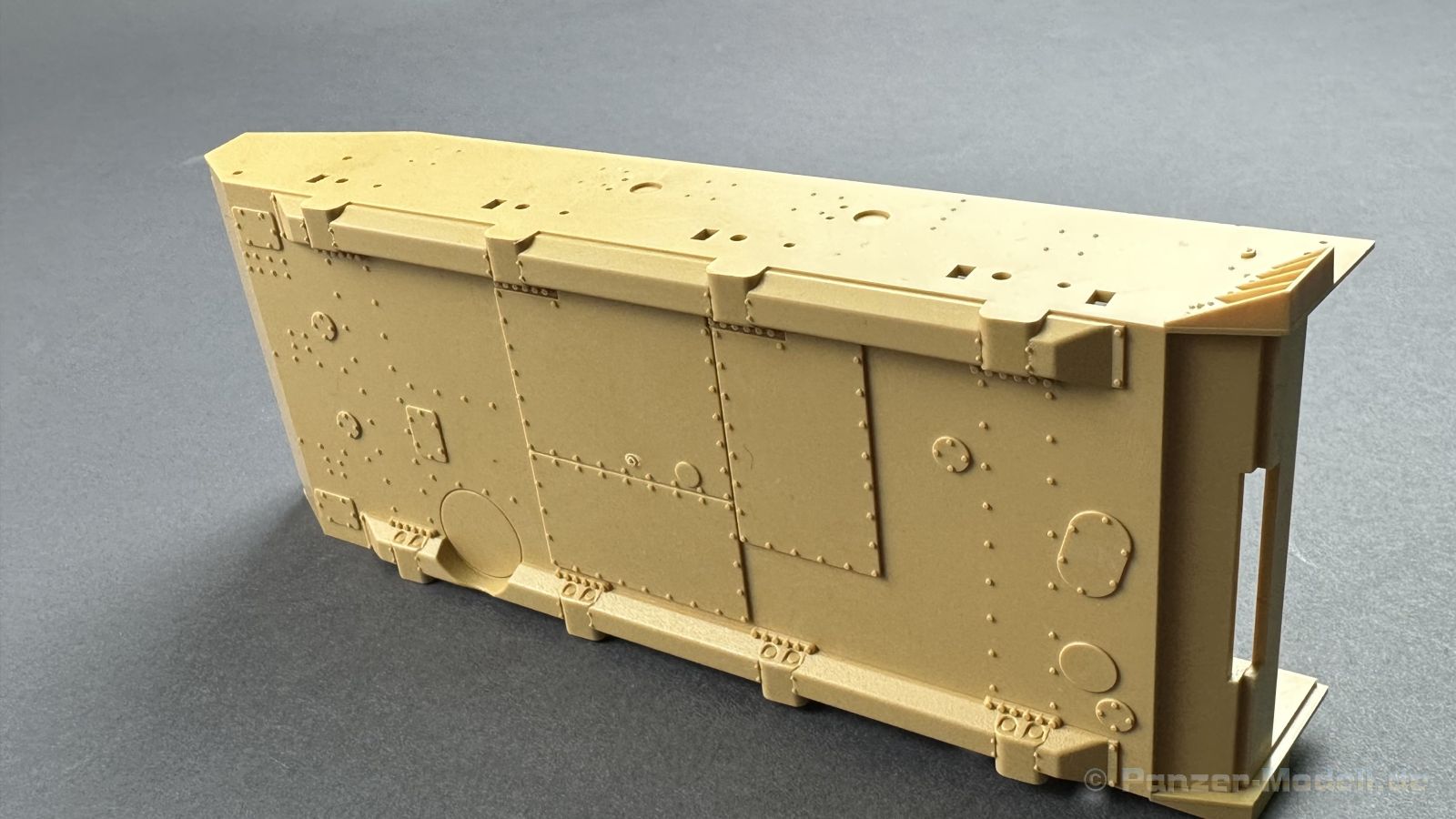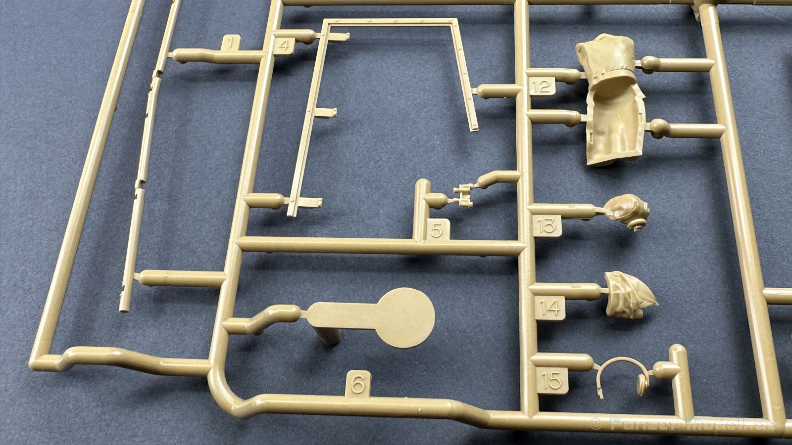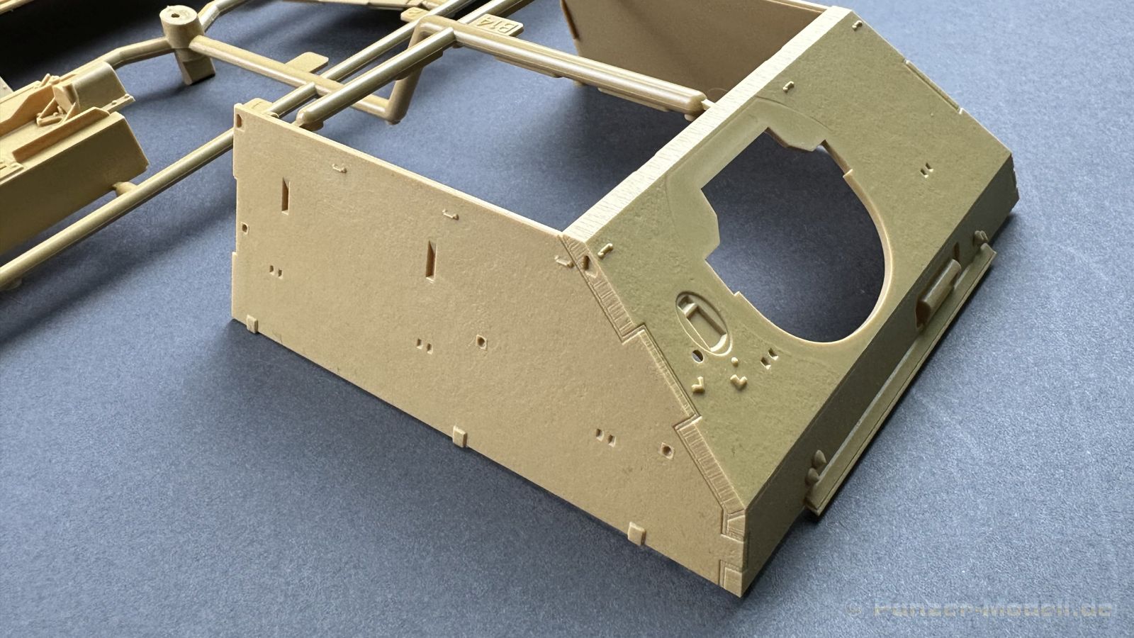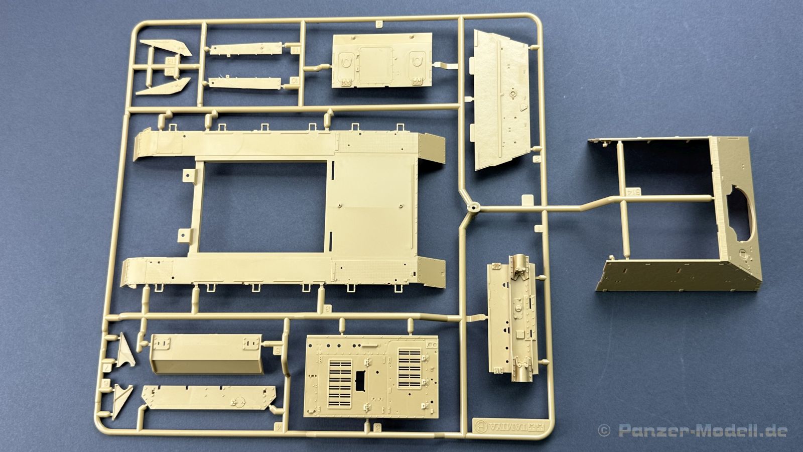 Jagdpanzer IV/70 (A) Schon vor der Spielwarenmesse wurde geleakt das Tamiya wohl einen Jagdpanzer auf Basis von ihrem Panzer IV realisieren möchte, 1-2 „verschwommene Bilder“ tauchten auch auf, aber so richtig wusste halt noch niemand wie der Panzer aussehen sollte bzw. welche Features uns wohl erwarten könnten… Das änderte sich als wir Anfang Februar die Spielwarenmesse zu Nürnberg enterten, da stand die Neuheit von Tamiya in voller Pracht! Doch Neuheit, nun ja sagen wir es einmal so: es ist nur bedingt eine Neuheit, da Teile vom Jagdpanzer vom bereits 2014 erschienen Jagdpanzer IV L70 (V) 35340 sind. Neu ist natürlich der obere Aufbau, der ja für die Alkett Version des Jagdpanzers IV angepasst worden ist und erfreulicherweise sind die übrigen Teile noch einmal einem Facelift unterzogen worden. Als Modell wird hier die Lösung von Alkett mit dem relativ hohem Aufbau dargestellt, da der Panzer IV mit dem Einbau der 7,5 cm KwK L/48 an seine Leistungsgrenze gekommen ist und aufgrund des limitierten Turmkranzdurchmesser keine größere Kanone aufnehmen konnte, wurde nach einer Lösung gesucht die leistungsstarke 7,5cm KwK L/70 zu verbauen. Mit dem Weglassen des Turmes und einer Veränderung vom Panzerkastenaufbau, ähnlich des schon bekannten Sturmgeschütz Konzeptes wurde der Jagdpanzer IV realisiert. Mit dem Bau wurde erst relativ spät begonnen, von August 1944 bis März 1945 konnten immerhin aber noch 277 Exemplare sowie ein Prototyp fertiggestellt werden. Zusammenfassend lässt sich sagen das der Jagdpanzer IV in V und A ein Erfolg war, sofern richtig eingesetzt, die relativ starke Frontpanzerung sowie die sehr starke und präzise 7,5cm L/70 standen dem völlig überlastenden vorderen Fahrwerk ( daher auch die Stahllaufrollen ) Getriebeproblemen und dem permanenten Spritmangel entgegen. Im Bausatz enthalten sind insgesamt: - 7 Spritzlinge - Ätzteilebogen für die Gitterschürzen ( Thomaschürzen ) - 3 Sorten Polycaps - Segmentkette - 1x Figur - 2x Decalvarianten Die Spritzlinge kommen in dem für späte deutsche Fahrzeuge typischen dunkelgelben/beigen Farbton daher und sind, wie es im englischen so schön heißt von den Details crisp – also absolut scharkantig abgegossen. Im allgemeinen gefallen wir die neuen Bausätze von Tamiya spitze, so wird auch hier darauf wert gelegt das wir eine Oberflächenstruktur haben die absolut angemessen ist, Schweißnähte und eine absolut durchdachte Vorgehensweise runden das Bild ab. Die Jungs von Tamiya müssen das Fahrzeug in Saumur mir Adleraugen vermessen haben, so wurden viele Merkmal exakt von diesem Fahrzeug wie die schon genannten Oberflächenstruktur übernommen, ebenso die Kette, welche eine späte, seltene Variante ist. Gut für uns, so kommt etwas Abwechslung auf den Basteltisch. Apropos Kette, hier hat Tamiya wieder sein ganzes können in die Waagschale geworfen, die Segmentkette weist Führungshilfen und eine 1a durchdachte Montage auf. Leider finden sich auf den Gummibandagen der hinteren Laufrollen keine Herstellerangaben wie Semperit, Fulda und Co auf, ich finde das könnte man in 2023 besser machen, zumal beim Original vermessen Fahrzeug in Saumur eben jene Daten zu sehen sind. Eine Figur , bzw. eine ¾ Figur liegt dem Bausatz ebenfalls bei, in Tamiya typischer Pose, relativ neu sind die modulare Bauweise ähnlich dem Dragon Gen 2 Konzept, ist zwar ein wenig aufwendiger, aber das Ergebnis ist dadurch wesentlich besser. Die Anleitung gibt insgesamt 33 Baustufen vor. Leider spendiert Tamiya nur 2 Decalvarianten, die da wären: - A 106th Panzer Brigade Western Front, Late 1944 in Dreifarbtarnung / Hinterhalt - B 17th Panzer Division, Eastern Front 1945 Dreifarbtarnung Zu finden sind die beiden Bemal Vorschläge auf einem separaten Bogen, der auch Hintergrundinformation ( in Deutsch, Englisch, Französisch und Japanisch ) sowie einige Bilder, ja sogar Bilder in Farbe enthält. Im Allgemeinen kann man die Anleitung von Tamiya gar nicht oft genug loben, alles bestens erklärt, mit Bildern untermalt und an vermeintlich kniffeligen Stellen nochmals als Bild oder Zeichnung untermauert. Das Kanonenrohr für die L/70 liegt als einteiligen in Kunststoff gespritztes teil bei das mit einem , zum Stück hohl gegossen End teil montiert werden muss. Erwähnenswert sind die Gitterschürzen die hier als Ätzteil auf einem , für Tamiya eher untypischen , großen Bogen daher kommen, absolut lobenswert!! Tamiya hat sich, zumindest auf dem Papier, schlüssige Konzept überlegt, wie man die Ätzteile mit den Kunststoffteilen verbinden kann überlegt. Die Praxis wird zeigen, ob das gut funktioniert oder ähnlich kompliziert wird wie bei Dragon damals Ich denke in der Zusammenfassung lässt sich sagen das dem geneigten Modellbauer hier ein Modell an die Hand gegeben wird, das sich A gut bauen lassen sollte, B gut recheriert ist und sich aufgrund der Beigaben so aus der Schachtel bauen lassen sollte. 2 minimale Minuspunkte möchte ich nicht unerwähnt lassen, lediglich 2 Decalvarianten und das fehlen von Details auf den Gummibandagen Absolut löblich ist der Preis, zumindest jetzt bei Erscheinen An dieser Stelle möchte ich mich bei Tamiya / Deutschland bedanken die uns hier das Muster zur Verfügung gestellt haben.