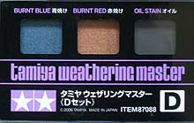 Im Vertrieb von Dickie-Tamiya Nachdem Tamiya schon immer mit guten Modellen aufwarten konnte, wird mit der Möglichkeit Alterung und VErfeinerung der Bemalung ein neuer Weg eingeschlagen. Mit der Nummer 87088 gibt es nun das Weathering Master Set D.Es handelt sich hierbei um ein kleines Kästchen, mit klappbarem Deckel, drei Farbtöpfchen und einem "Pinsel" mit einer Schaumstoffseite und einer Pinselseite. Die Farben sind von recht fester Konsistenz und werden nur als Pigmentfilm aufgenommen, was den Auftrag am Fahrzeug leicht dosierbar macht! An sich sieht es nicht anders aus, als ein kleines Schminkkästchen für die Damenwelt - also, bloß nicht verwechseln, sonst schmiert sich die Freundin noch Schlammfarbe ins Gesicht. ;-). Das Set D bietet dem Modellbauer die drei Farben "verbranntes blau", "verbranntes rot" und "Öl". Damit hat man schon ein paar schöne Gestaltungsmöglichkeiten für die Alterung von Fahrzeugen. Allerdings liegt es immer noch am Modellbauer, wie und wo er diese am besten einsetzt - es nützt der beste Effekt nichts, wenn er falsch eingesetzt ist. Die Einsatzmöglichkeiten dieses Sets sind wohl hauptsächlich für die Darstellung von Ölspuren und Flecken. Die beiden verbrannten Farbtöne könnten zur Filterung an heißwerdenden Teilen verwendet werden. Aber mit diesem Set erleichtert Tamiya dem Modellbauer die Möglichkeit des Auftrags von Schmutz und Alterungsspuren erheblich. Und da das ganze für knapp 8 Euro zu haben ist und auch nur wenig Material verbraucht wird, ist dies eine gute und lohnenswerte Anschaffung. Das Set ist bei dem Modellbaufachhändler eures Vertrauens zu bekommen. |
