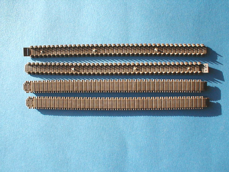 Warum aber heutzutage das Kanonenrohr noch aus zwei Hälften bestehen muss ist mir ein Rätsel. Es geht ja nun auch anders. Die Ketten aus Vinyl sind leider zweigeteilt und weisen auf der Innenseite auch noch hässliche Auswerferstellen auf. Gerade bei einem Modell wie dem Sherman, ohne Kettenschürzen, lassen sich die Trenn- / Verbindungsstellen an den Ketten nur schwer kaschieren.