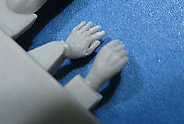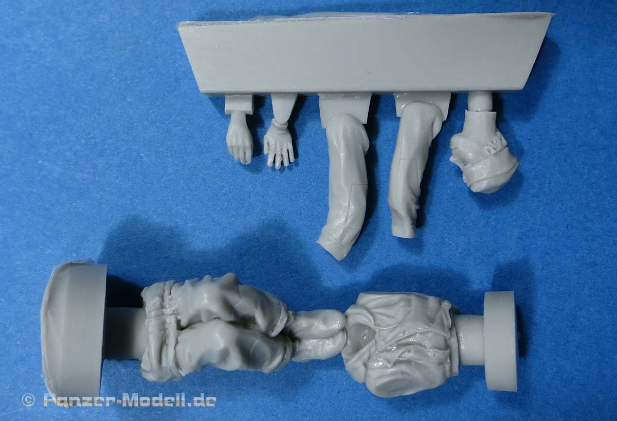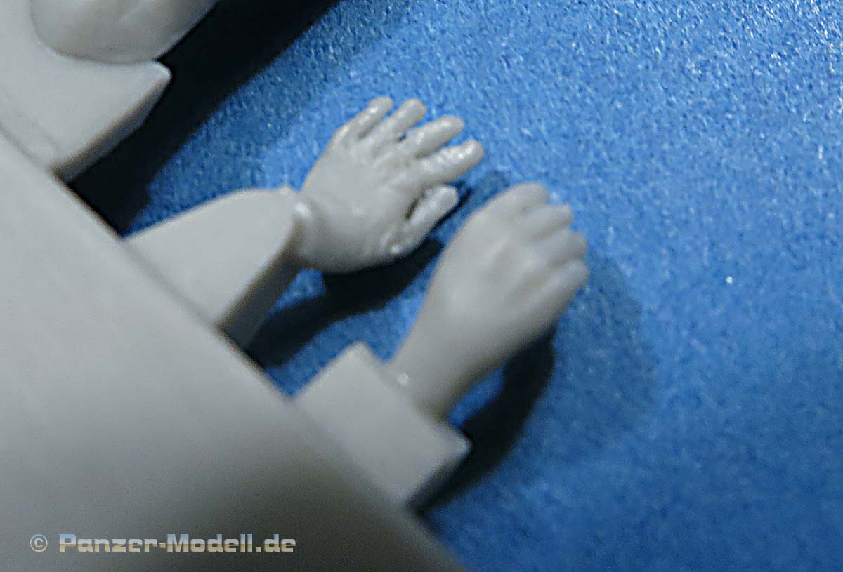Die Hände sind einzeln und sind mit feingliedrigen Fingern sauber und ansprechend gegossen. Die Stiefel sind auch schön dargestellt mit den typischen Stiefeln der Panzerbesatzungen, die im Gegensatz zur Infanterie Gummisohlen statt der genagelten Sohlen hatten. Dies ist in diesem Set ebenfalls korrekt dargestellt.