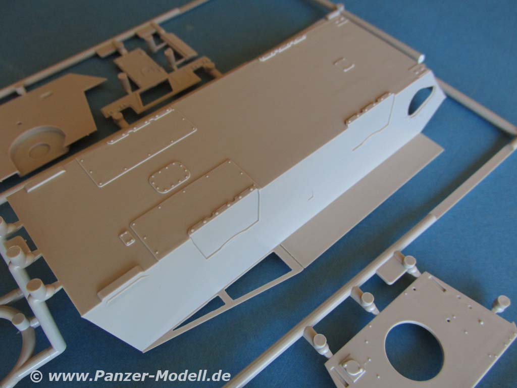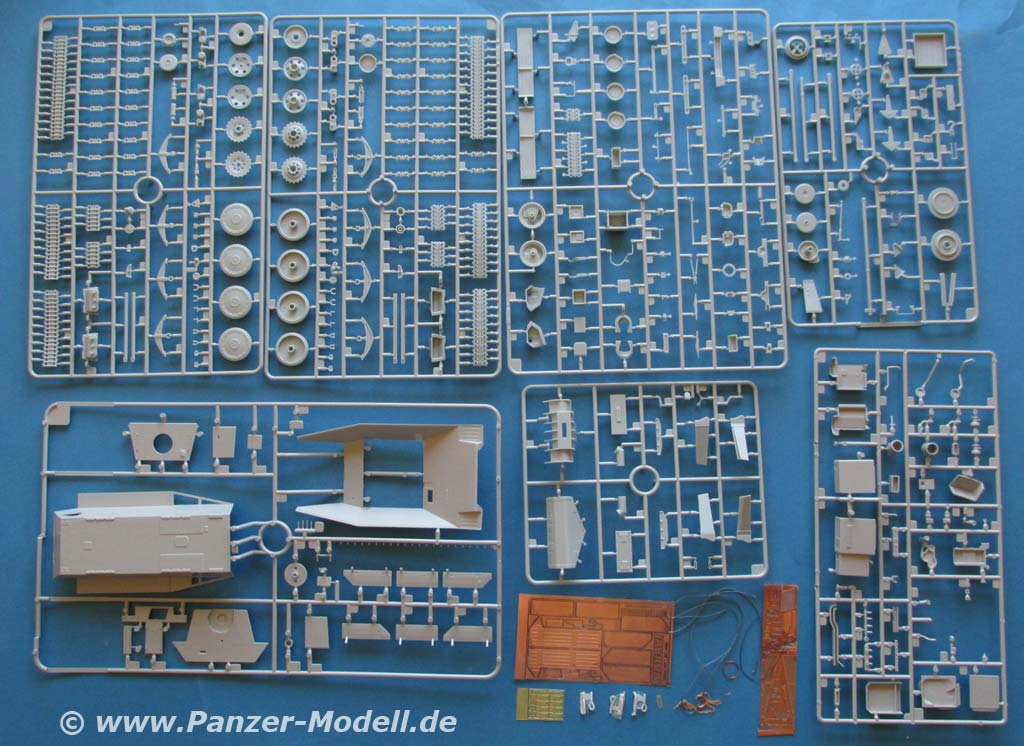 Dieser Bausatz weist gegenüber der "normalen" Version 35101 einen extra Spritzling auf, der die Darstellung des Motors und Anbauteile beinhaltet, sowie eine extra PE Platine mit Kettenblechen und Seitenschürzen aus realistisch dünnen Teilen.
