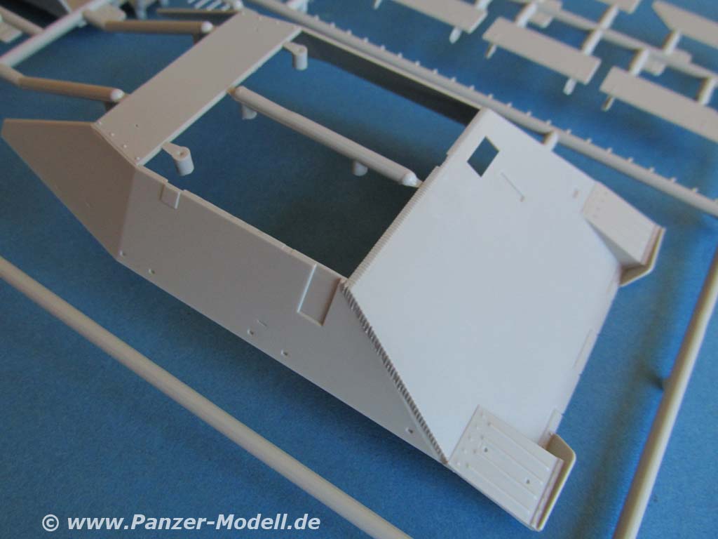 Insgesamt ein schöner Bausatz, der endlich einen späten Bergehetzer mit Erdsporn als Spritzgussbausatz darstellt und in dieser limitierten Version mit der Darstellung des Motors und PE Teile für die Seitenschürzen auftrumpft - ob das den Mehrpreis von rund 10 Euro rechtfertigt muss jeder für sich entscheiden.