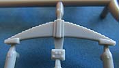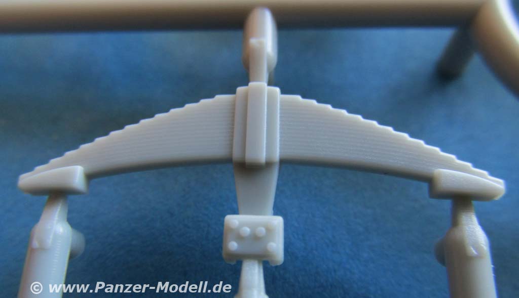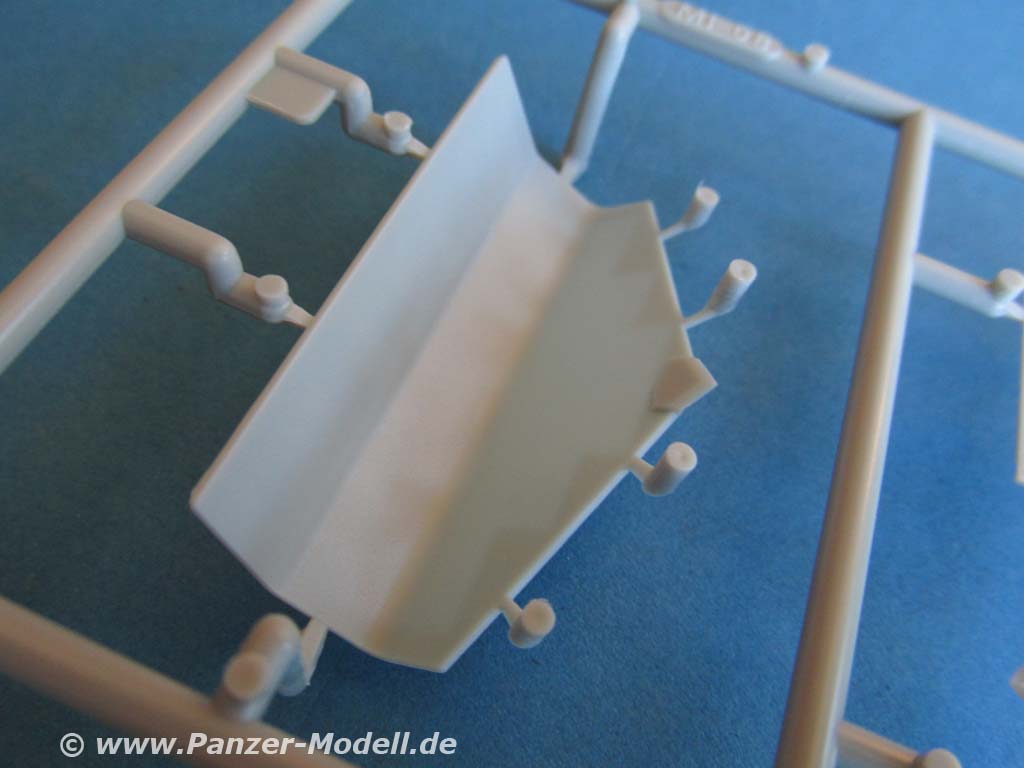 Zuguterletzt liegt dem Bausatz der große, markante Erdsporn bei, der klappbar am Heck angebaut wird. Dieser setzt sich aus mehreren Teilen zusammen, wobei der Sporn an sich zweiteilig ist. Dieses Gerät macht, gerade mit den Versteifungsrippen einen guten Eindruck.