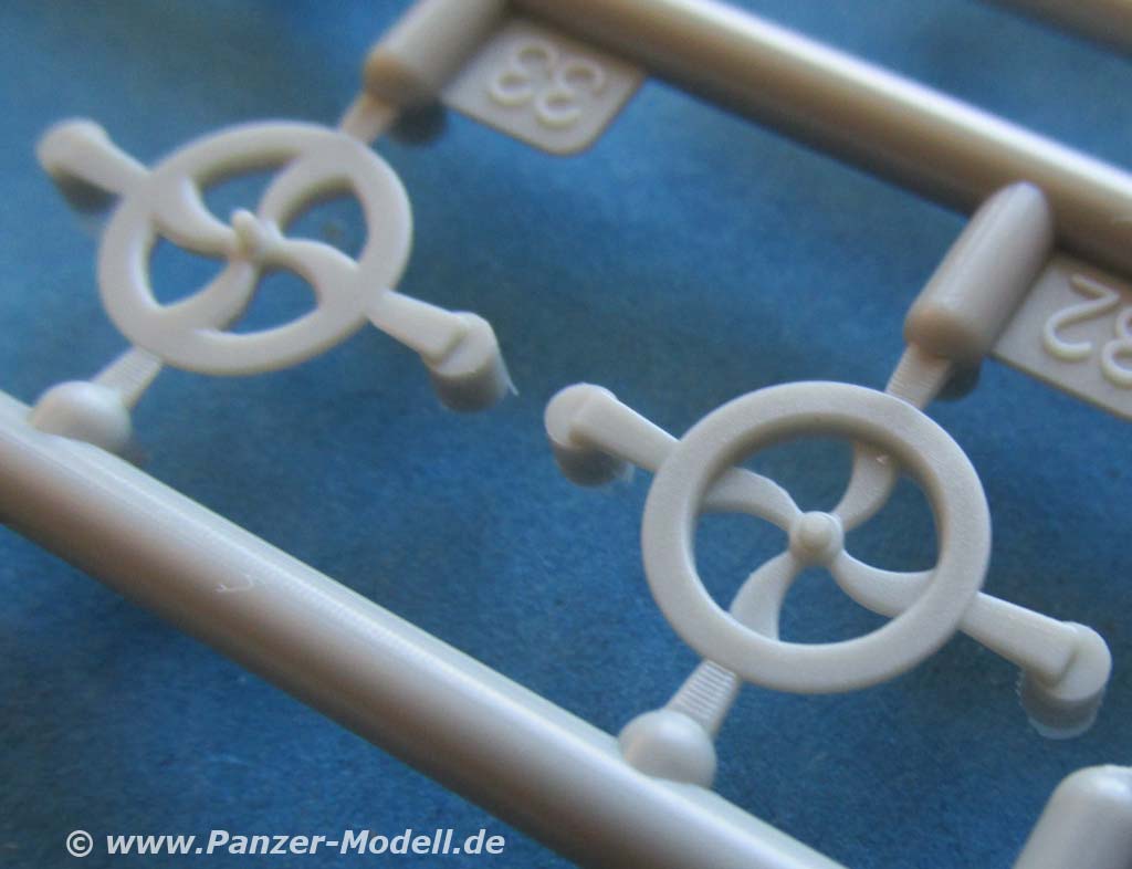 Das Schalt- und Lenkgetriebe ist natürlich ebenfalls enthalten und recht detailliert dargestellt - auch hier hat man z.B. das Lenkgetriebe in über 10 Einzelteile aufgebrochen ... ob das unbedingt nötig ist? Zur Ultradetaillierung sind noch eine handvoll PE Teile enthalten.