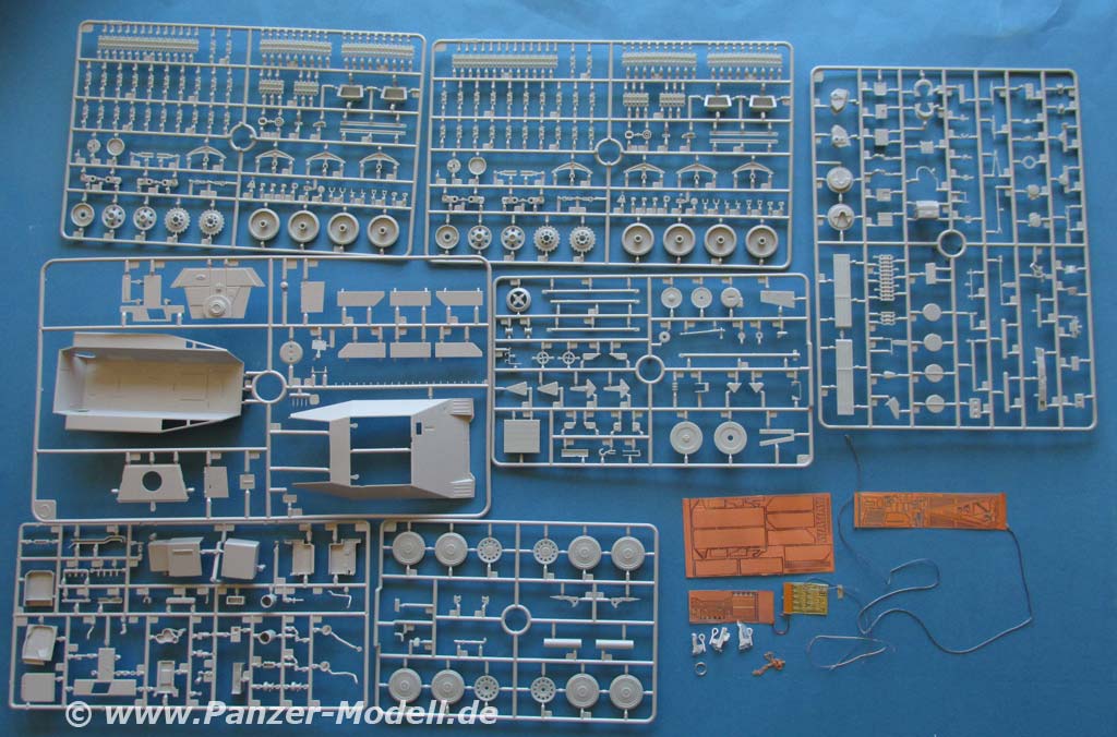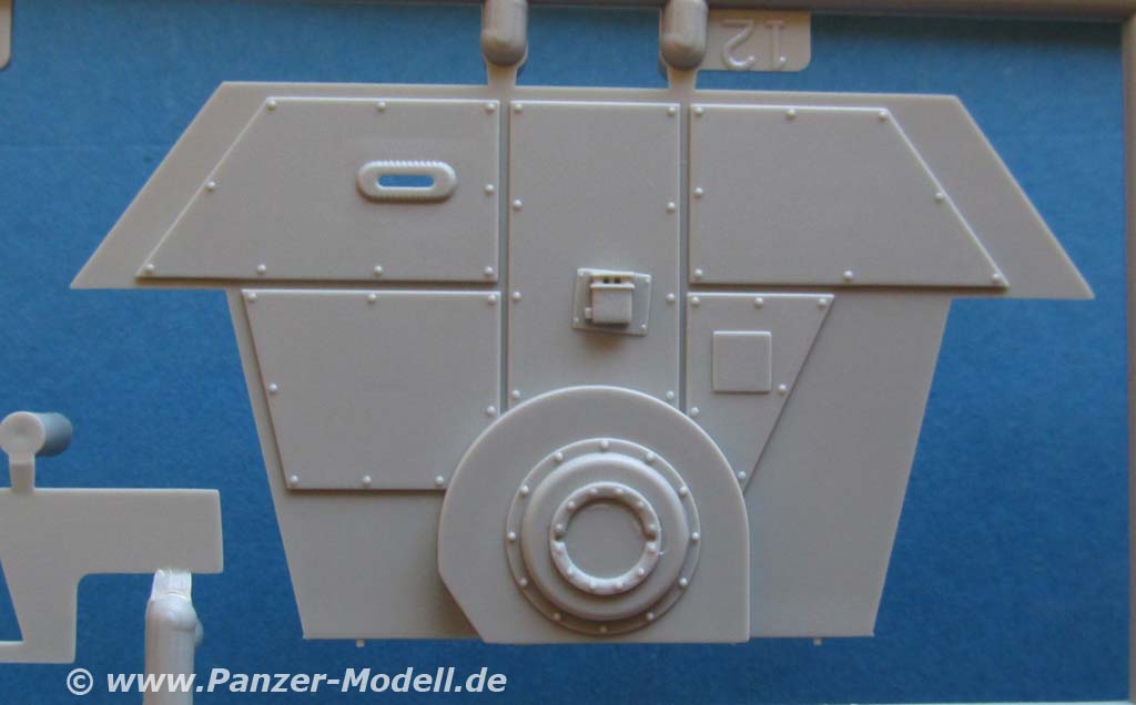 Dieser Bausatz weist gegenüber der "normalen" Version 35102 einen extra Spritzling auf, der die Darstellung des Motors und Anbauteile beinhaltet, sowie eine extra PE Platine mit Kettenblechen und Seitenschürzen aus realistisch dünnen Teilen.