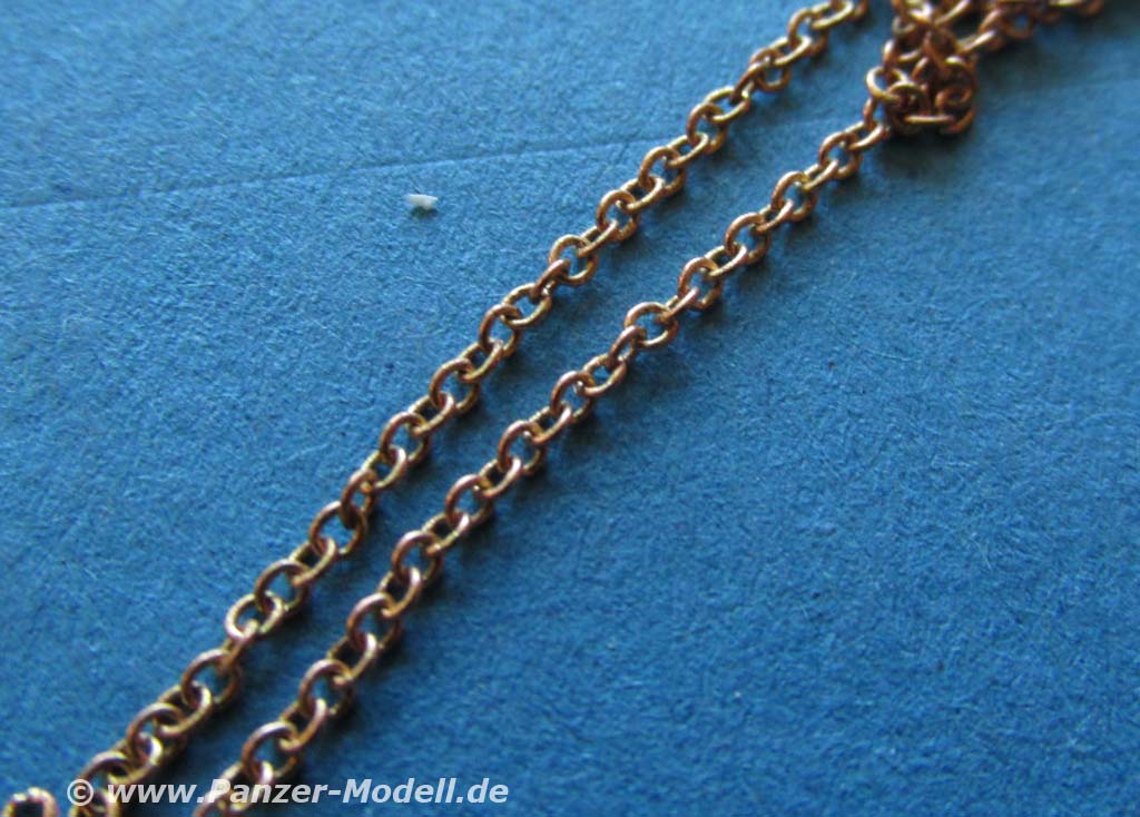 Die kurzen Stücke Kettenbleche für den hinteren Bereich kann man hier wahlweise aus den beiliegenden Plastikteilen oder aus PE Blechen bauen. Die Version mit den PE Blechen ist definitiv aufwändiger, sieht aber am Ende realistischer aus und lässt die Möglichkeiten von beschädigungen einfacher erscheinen.