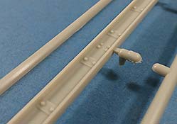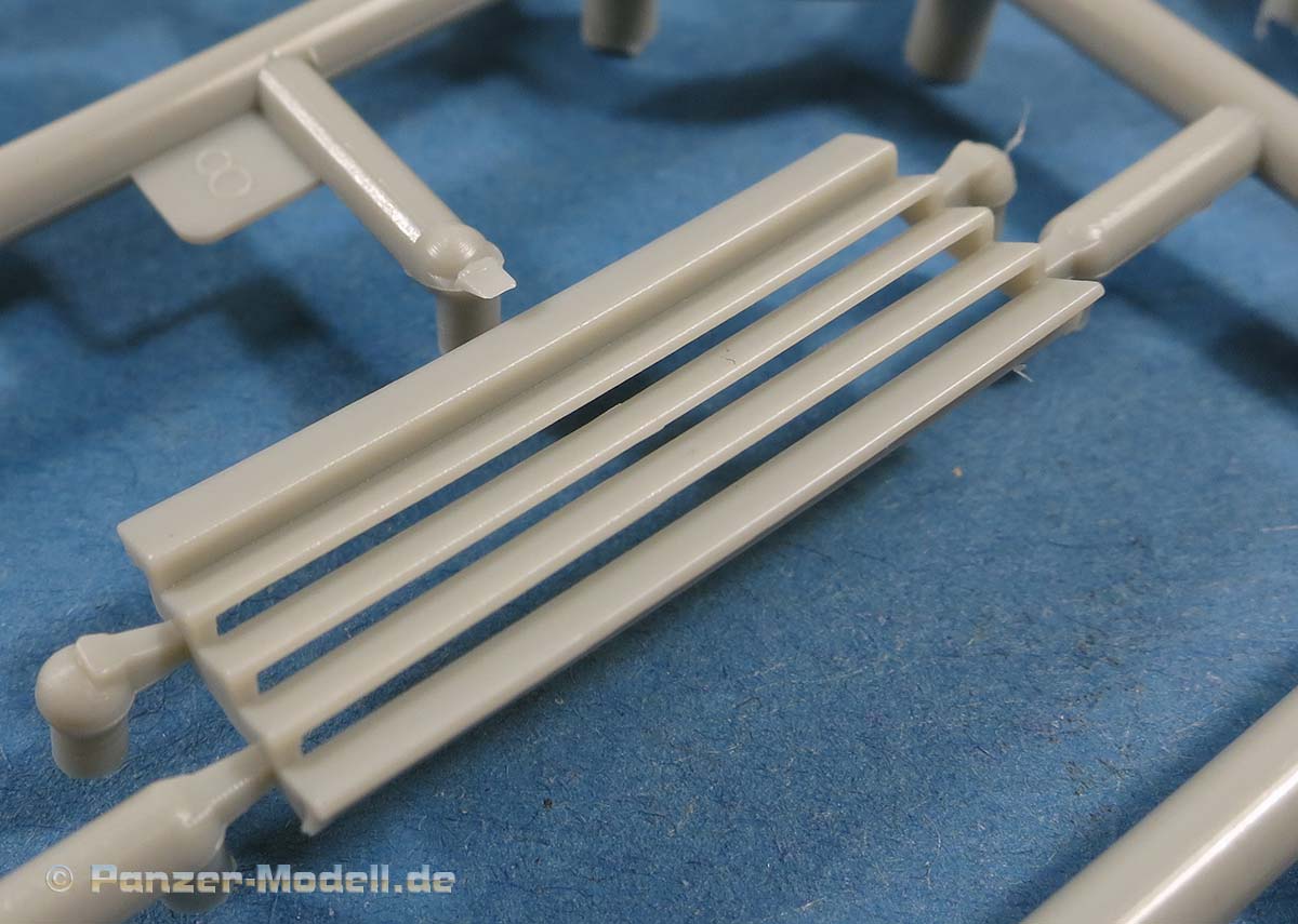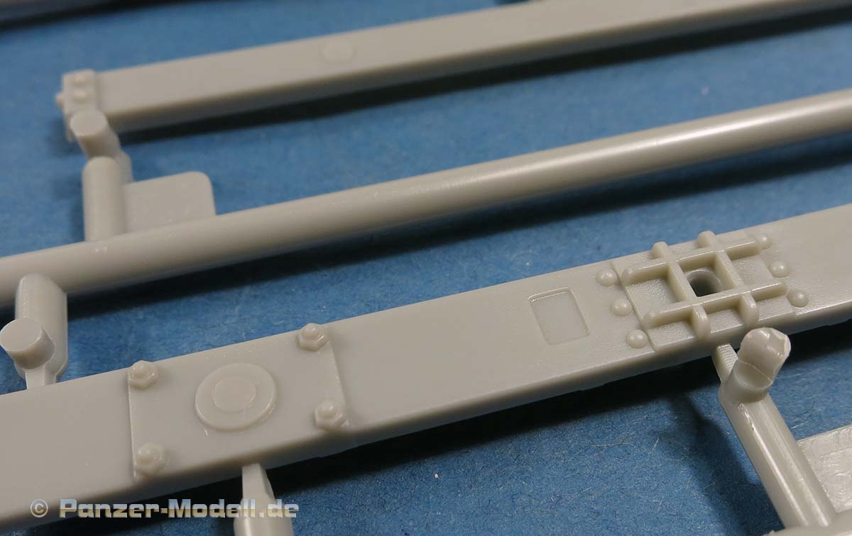 Auch die über den Achsen aussen angebrachten Blattfedern sind sauber und fein detailliert gespritzt, bis auf ein, zwei leichte Sinkstellen.
