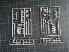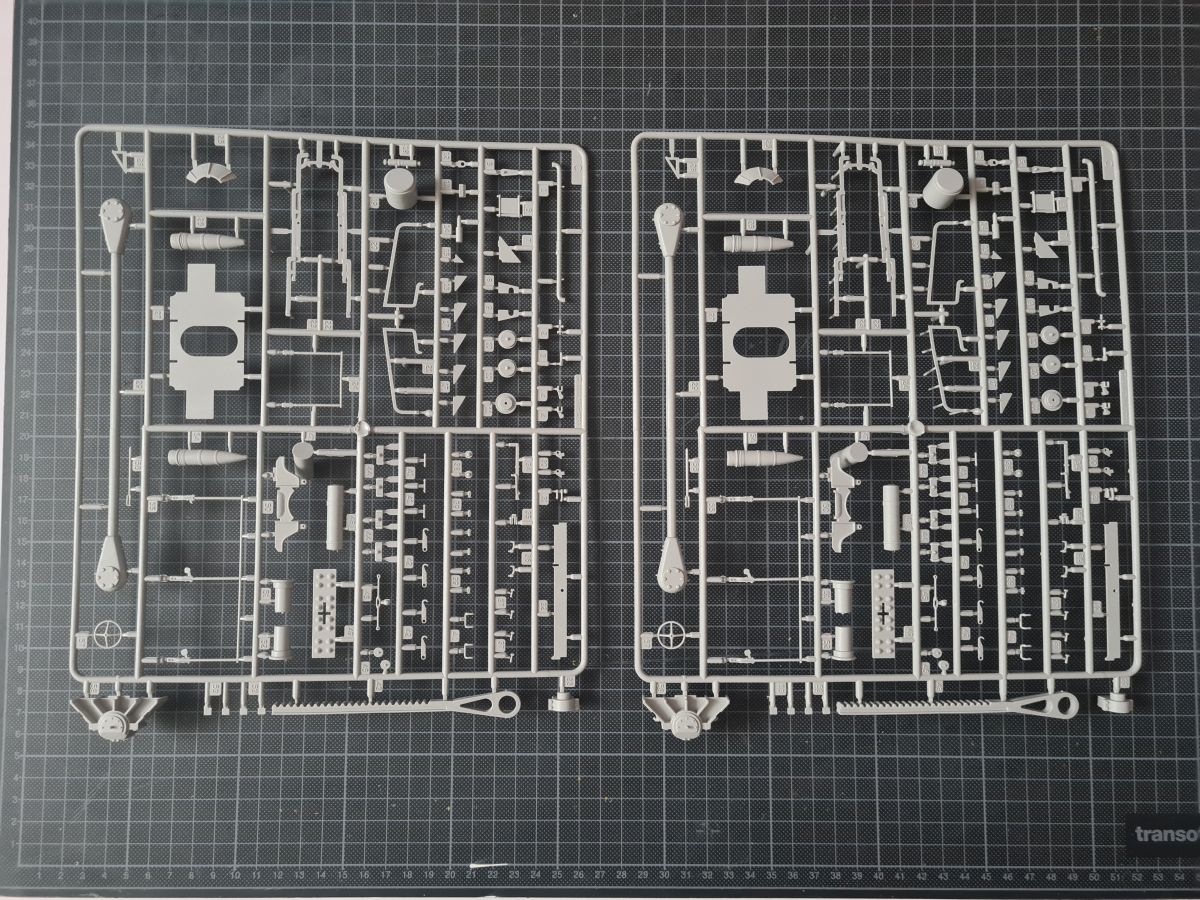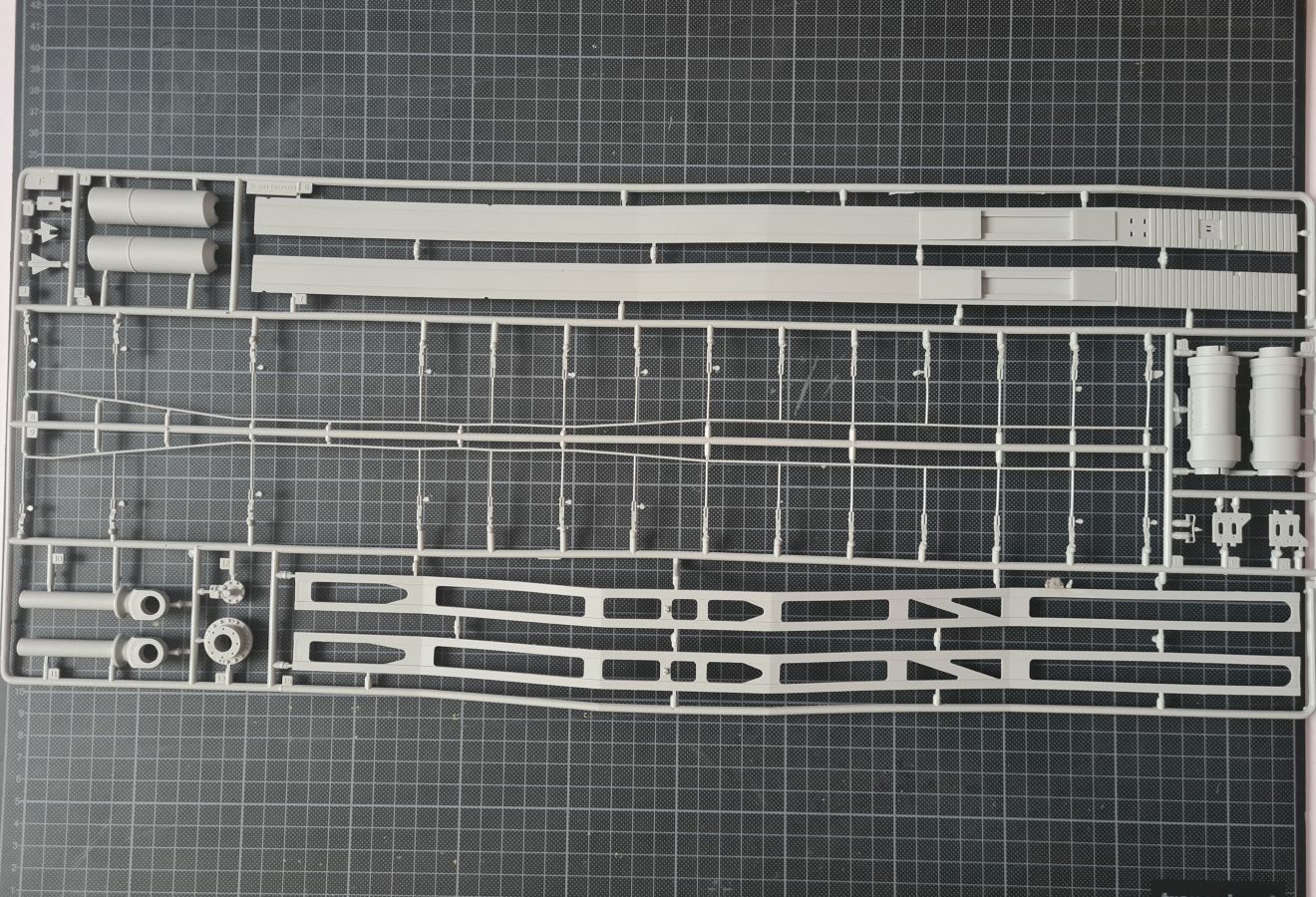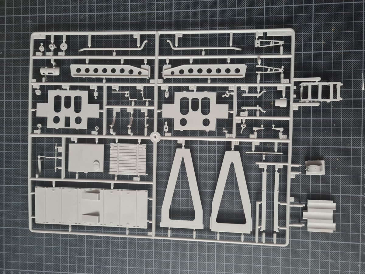 Beim Öffnen des doch recht großen Kartons, finden sich 20 Spritzgussrahmen für das Rohr, die Rohrwiege mit Rahmenlafette und die beiden Drehgestelle auf denen die Lafette aufgesetzt wird. Weiterhin finden wir 4 Spritzgussrahmen für die Darstellung der Schienen und die beiden Oberteile der Drehgestelle. Zu guter Letzt haben auch noch 3 mehr oder weniger große Kartons platz. In diesen befinden sich neben dem Gleisbett und der Drehscheibe, gut verpackt in eine extra Schutzhülle die Teile der Rahmenlafette und im Kleinsten der drei Kartons, 18 Polycaps, eine Ätzteilplatine, 2 Metallzylinder (zur Aufnahme des Rohres in der Rohrwiege), eine feingliedrige Metallkette, ein Stück Kupferdraht, ein Stück Faden und ein Gummischlauch. Abschließend zu diesem Potpourri aus den verschiedensten Materialien der Modellbauwelt finden wir noch einen Decalsatz, aber dazu später mehr. Macht in der Summe ca. 1200 Plastikteile und diverses Kleinmaterial. Der erste Eindruck der Teile und Spritzlinge ist, trotz des Alters, in sehr guter und bekannter Trumpeterqualität. Feine Details, detaillierte Holzmaserung und selbst auf den kleinsten Teilen sind erhaben gegossene Schriftzüge zu erkennen. Die Schienen- und Gleisbettsegmente sind mit allen anderen von Trumpeter gefertigten, schienengebunden Modellen, identisch und somit ist eine Erweiterung, zum Beispiel mit der WR 360 C12 Lokomotive (Nummer TRU00216) ohne Probleme möglich. Die Bauanleitung ist als kleines Heft ausgeführt und beschreibt den Bau detailliert auf 44 Seiten. Der Bemalungsguide ist in schwarz-weiß gehalten, jedoch ist auf der Kartonverpackung nochmal alles in Farbe abgebildet. Die Gesamtlänge des Modells wird von Trumpeter mit knapp 96cm angegeben, wobei bei Nutzung des Drehtellers und der mitgelieferten Schienen eine Länge von etwas mehr als 100cm erreicht wird. Und zwar im 90° Winkel, in 2 Richtungen, je 100cm! Die Höhe wird laut Verpackung mit 16cm und die Breite mit knapp 13cm benannt, wobei die Höhe mit gesenktem Rohr gemeint ist. Vorsichtig geschätzt wird bei Schussposition eine Höhe von ca. 40cm erreicht. Das Geschützrohr lässt sich beweglich bauen und auch die Drehgestelle bleiben beweglich. Für die Darstellung wird dem Modellbauer eine Variante auf geradem Gleisbett ober aber auf einer Drehscheibe angeboten. Letztere macht sicher viel her, kostet aber auch entsprechend Platz. Ein doch recht auffälliges Problem und wohl der größte Kritikpunkt ist der Decalsatz. Dieser strotzt nur so von Rechtschreibfehlern und kostet dem besten Modell viel an Glanz. Man kann sicher mit Verschmutzung und Alterung des Modells arbeiten und somit die Fehler vertuschen, aber jeder Heim- und Handwerker kennt dieses Gefühl, dass man einen Fehler oder eine nicht so gelungene Stelle immer wieder im Blick hat. Wer viel Wert auf Detaillierung legt, sollte sich zum Beispiel die Zurüstsätze der Firma Schatton ansehen. Außer einem gedrehten Alugeschützrohr (Schatton Art.Nr.: 3510, ca. 33€), bietet dieser Hersteller auch noch ein Set aus 2 Granaten und den passenden Treibladungskartuschen an (Schatton Art.Nr. 3511, ca. 12€). Auch eine Überlegung wert ist der Decalsatz von Peddinghaus (Peddinghaus Art.Nr.: 0905, ca. 12€), der auch nicht gänzlich fehlerfrei daherkommt aber doch etwas besser scheint. Trumpeter hat natürlich auch nicht vergessen, dass für den Einsatz des Geschützriesen eine Besatzung von Vorteil wäre und spendiert unter der Nummer TRU00406 eine 8-köpfige Bedienmannschaft, je nach Bezugsquelle für ca. 15€. Fazit: Ein recht imposantes Modell, das nicht nur eine Menge Bastelspaß verspricht, sondern auch den ein oder anderen geneigten Modellbauer am Ende vor ein Platzproblem stellen wird. Die Detaillierung, sowie der Teileumfang rechtfertigen den Kaufpreis für um die 100€ auf jeden Fall. Ein echter Hingucker in jeder Modellbausammlung ist es allemal.