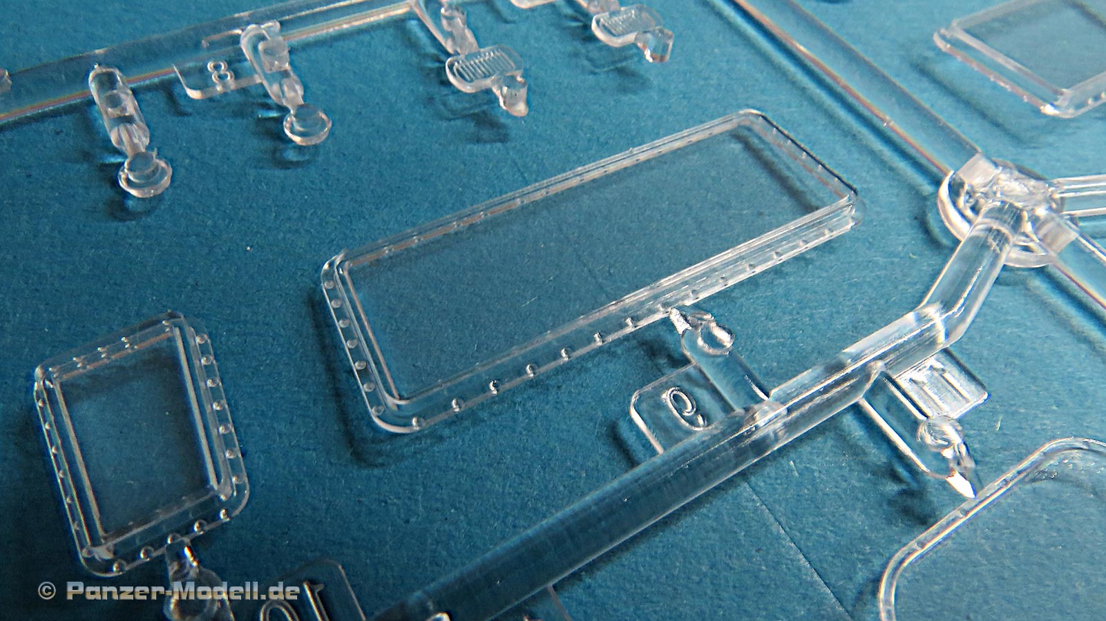 Das Schöne ist, dass Trumpeter soweit gedacht hat, dass für die Fensterteile vorgeschnittene Maskierschablonen zum Aufkleben beiliegen.