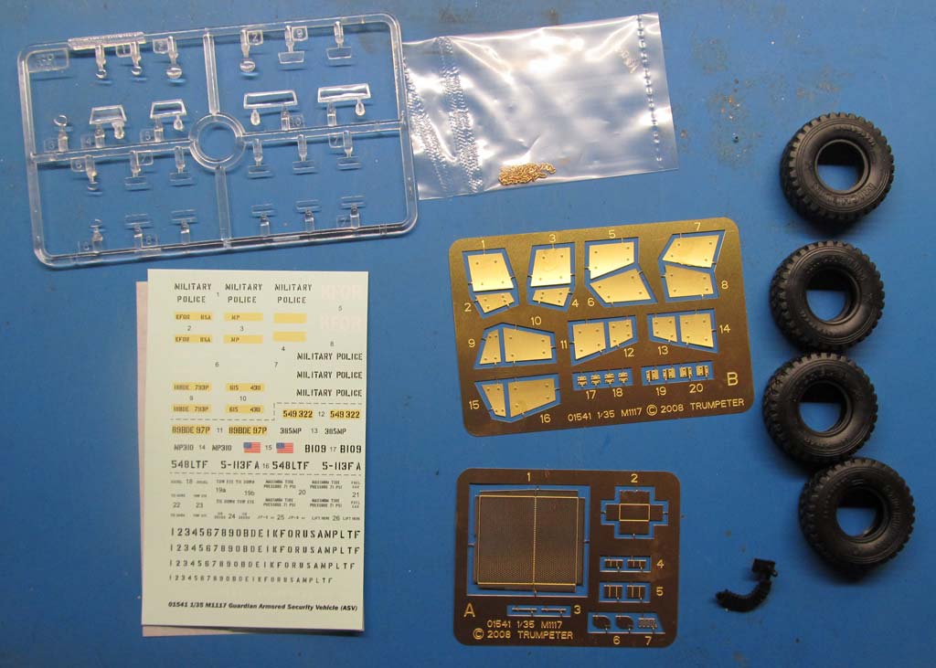 Heute will ich mich mal für die Modellbaugemeinde mit dem Bausatz 01541, des M1117 Guardian (ASV) von Trumpeter befassen. Die Schachtel kommt in mittlerer Größe und darinliegend mit 6 Spritzlingen aus grauem Plastik, 1 aus klarem Plastik für die Fenster, Winkelspiegel und Beleuchtung, 4 Vinylreifen (mit Aufdruck), 2 kleinen Platinen PE-Teilen, 1 kleine Kette und dem Decalsheet für 2 Versionen (eine KFOR und eine aus dem Irak) daher. Natürlich auch die Ober- und Unterwanne!! Die Teile sind allesamt sehr sauber gespritzt, so das ewig lange dauerndes versäubern den Modellbauer nicht lange aufhält. Zum Teil sind sehr filigrane Teile dabei, zum Beispiel die Schutzbügel für die Lampen und Spiegel, aber auch das gesamte Fahrwerk sieht sehr filigran aus. Wenn ich das richtig gesehen habe dürfte es keine große Sache sein einen Lenkeinschlag darzustellen.2 Rahmen beinhalten die Teile für das Fahrwerk und die Felgen. Letztere machen auch einen sehr feinen Eindruck. Ein Spritzling birgt die erforderlichen Teile für die Außenpanzerung. Die Oberflächen sind mit einen feinen Antirutschbelag versehen den ich auf den ersten Blick sehr unrealistisch fand aber dann auf Referenzbildern deren Richtigkeit gesehen habe. Die Luken können Wahlweise geöffnet oder geschlossen angebaut werden. Offen gebaut sind auch die Details auf den Innenseiten sichtbar die auch sehr gut gelungen sind. Der Rest ist dann für den Turm und sonstiger kleinen Anbauteile. Die PE-Teile sind in alt ehrwürdiger Trumpeter Manier. Die Decals sind sehr fein und für ein so „kleines“ Fahrzeug sehr umfangreich. Hier gibt es die Möglichkeit ein Fahrzeug aus dem Kosovo zu bauen. Wie auf dem Farbig dargestellten Bemalungsplan, in 3Farb Nato Anstrich oder eine Version aus dem Irak in Wüstenanstrich. Dann sind noch allgemeine Decals auf dem Bogen. Luftdruck und all so ein Zeugs. Nicht überladen führt die Bauanleitung in 14 Schritten zum Erfolg. Wie immer im DIN A4 Format, gut durchdacht und überschaulich. Bei den „wenigen“ Teilen wäre man mit weniger Bauschritten ausgekommen aber so erleichtert es dem Modellbauer die Teile übersichtlich zu verbauen. Die beiden Wannenteile haben beim trocken auf einander legen schon so gut gepasst das ich am liebsten schon Kleber drüber gekippt hätte!! Aber es geht ja nicht ohne nörgeln!! Ich hätte mich über eine Inneneinrichtung gefreut aber man kann ja nicht alles haben. Fazit: für rund 20,-€ bekommt man einen Bausatz der auch für Anfänger gut, nicht leicht, aber zu schaffen ist. Überzeugend sind die Filigranität der Teile und das sehr gut gefüllte Decalsheet. Ein schöner Bausatz dessen Endergebnis locker mit Dingo, Fennek und dem ein oder anderen Stryker mithalten dürfte und meiner Meinung nach empfehlenswert!! (Review von Oliver Berger) |