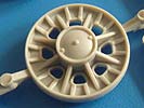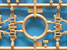 Die Teile sind sauber gespritzt ohne Versatz mit sehr schönen Details. Hin und wieder findet man etwas hauchdünnen Grat, der aber keine aufwendige Mehrarbeit darstellt. Störend könnten da eher einige recht tiefe Auswerferstellen sein. Sie befinden sich zwar an Stellen, an denen sie nach dem Zusammenbau nicht mehr gesehen werden, es sei denn, man möchte den KV mit geöffneten Luken oder geworfener Kette darstellen. Die Lukendeckel zeigen auf der Innenseite den detaillierten Verschlussmechanismus zusammen mit 2 tiefen Auswerferspuren. Die Unterseite der Kettenbleche hat die mittige Verstärkungsrippe zusammen mit 11 unübersehbaren Auswerferabdrücken. Trotzdem ist das nichts, was den guten Gesamteindruck herabsetzt.