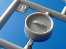Gehen wir mal nach hinten zum Heck. Die gewölbte Heckplatte kommt mit wenigen Details aus. Erwähnenswert hier sind das photogeätzte Lüftungsgitter und das Luftumleitblech, für das man das Plastikteil WC28 oder das alternativ aus 6 Ätzteilen zusammengesetzte Blech verwenden kann. Zu beachten ist, dass man das geätzte Blech erst noch biegen muss, um die richtige Wölbung zu erreichen. Für die einzelne Heckleuchte gibt es ein Klarsichtteil, dem man mit entsprechender Bemalung den natürlichen Look geben kann. Die naturgemäß kräftigen Abschleppschäkel werden ohne Kleben eingeklippt und bleiben beweglich.