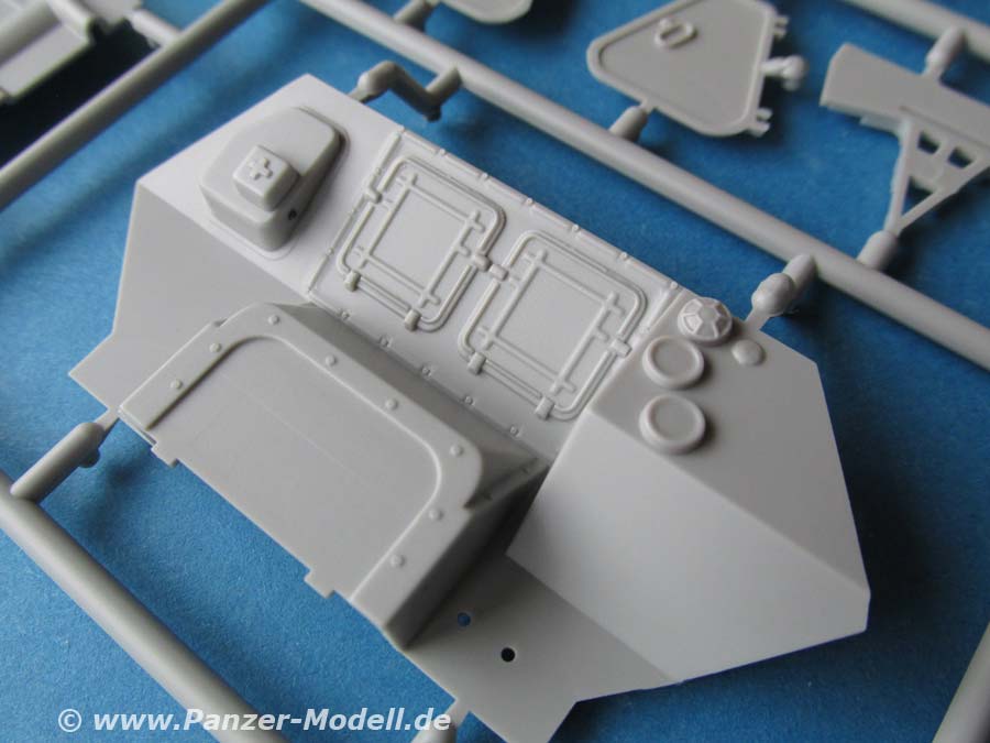 Die Unter- und Oberwanne ist jeweils in einem Stück und bereits sehr ansprechend mit Details und Gravuren versehen. Dazu sind beide Teile, obwohl recht lang und schmal absolut sauber und verzugsfrei.