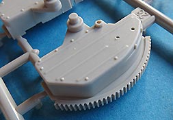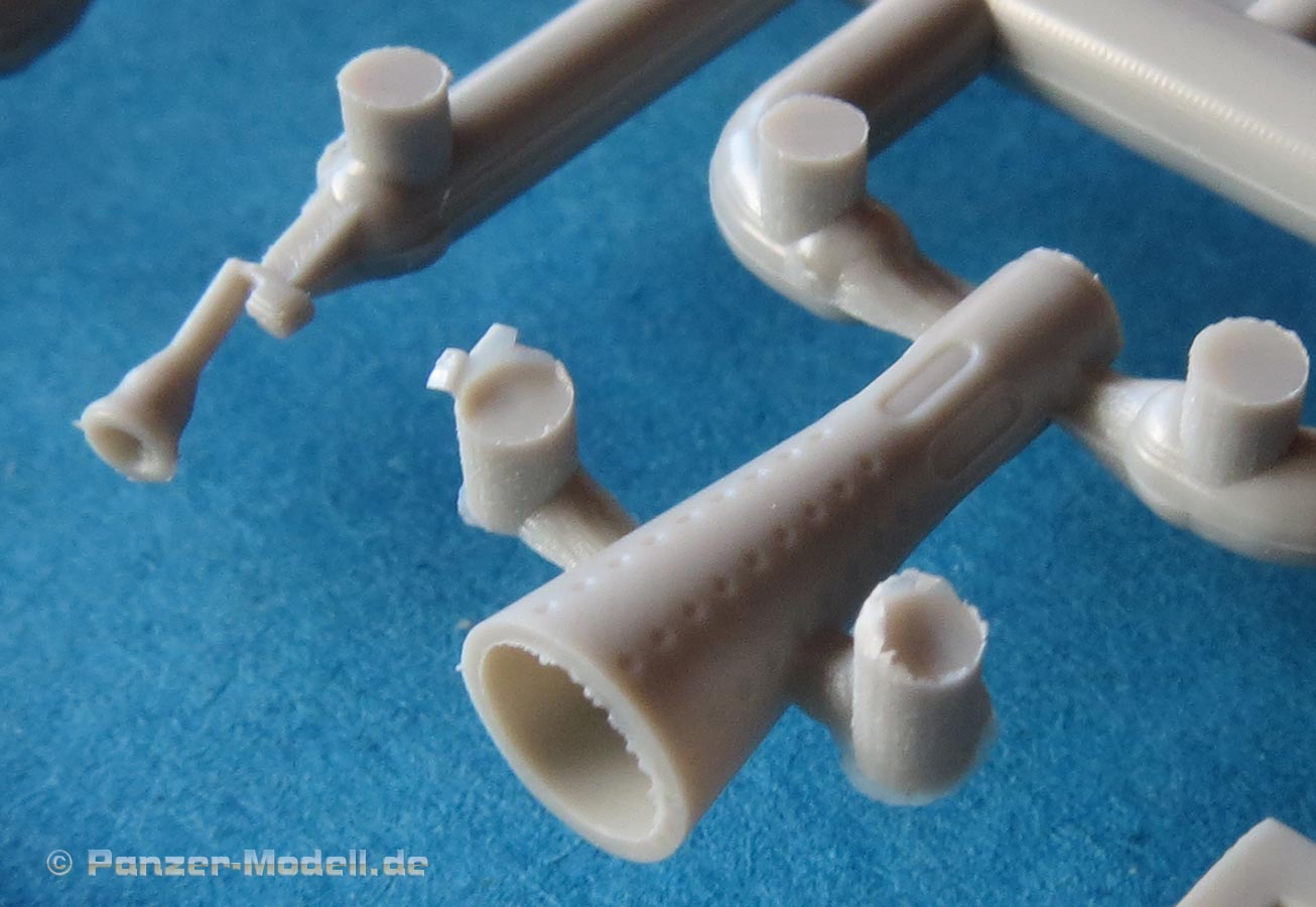 Wie bei Trumpeter mittlerweile gewohnt ist die Qualität der Bauteile recht gut. Kein Verzug, keine Fischhäute, kaum störende Auswerfermarken und allgemein gut gestaltete Details.
