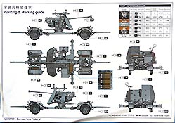 Auf einem farbigen DIN A4 Zusatzblatt ist ein Farbprofil zur Bemalung der Flak in dunkelgrau aufgebracht. Markierungen oder Decals sind nicht enthalten - insgesamt etwas mau Die Farbangaben werden für Mr.Hobby, Acrysion, Vallejo, Model Master, Tamiya und Humbrol gemacht.
