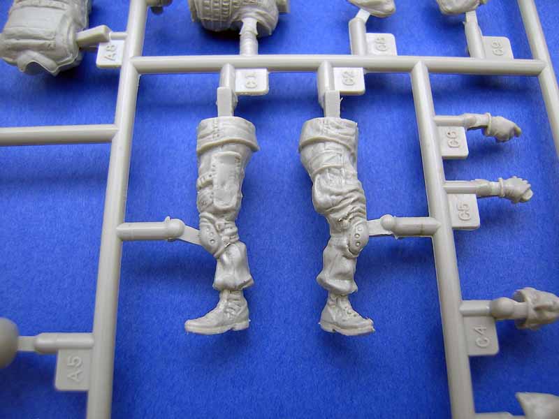 Die beiliegenden Figuren weisen viele schöne Details und Ausrüstungsmerkmale auf. Der Faltenwurf der Kleidung und die Körperhaltung wirken authentisch. Allerdings sind einige Details auch ein wenig "verwaschen" dargestellt und es fällt doch etwas Versäuberungsarbeit an. Siehe hierzu die Detailfotos der Figuren.