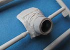 Das kanonenrohr besteht aus zwei Hälften plus der Mündung in einem Stück. Dank der strukturierten Schutzhülle der Kanone fällt die Längsteilung der Hälften nicht so sehr ins Auge.