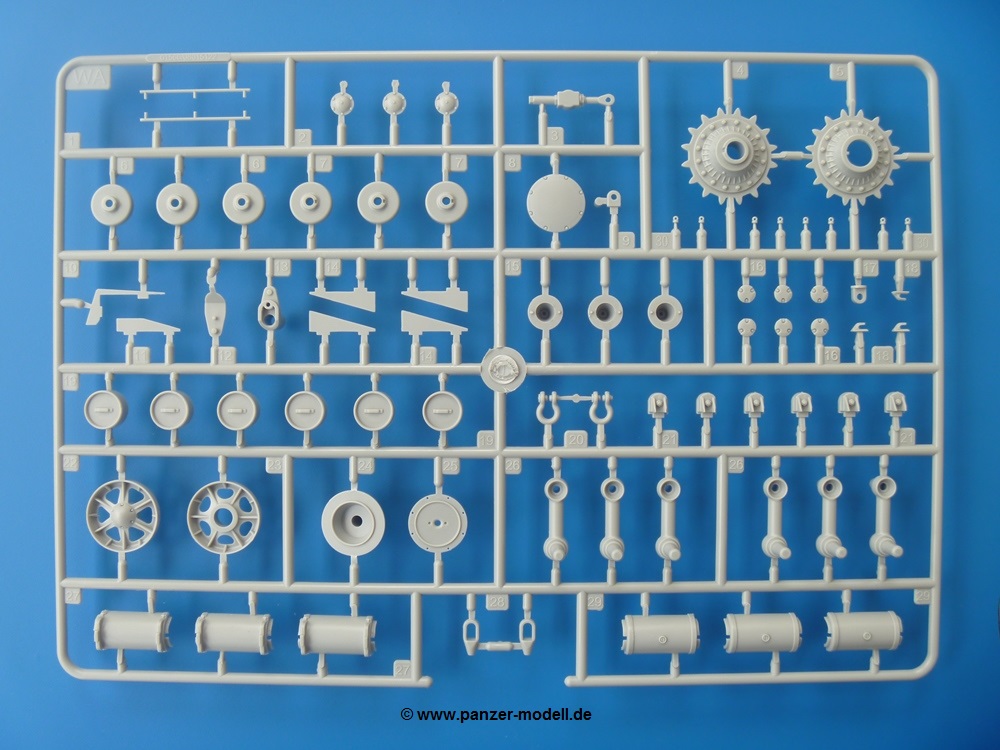 - WA (2x): Schwingarme, Stütz-, Leit und Antriebsräder, Anschlagdämpfer, Außentanks, Seilkauschen, Schäkel, Kettenblechquerstreben, weitere Kleinteile