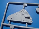 Die großen Unbekannten sind die Teile, die aus dem KV-1 und der B-4 die S-51 machen. Hier haben wir zum einen das komplette Oberdeck in einem Teil von der Fahrerfront bis zur Motorabdeckung. In der Mitte ist eine Wanne eingelassen, damit das Rohr bei Steilfeuer genügend Platz für den Rücklauf und der Fahrer einen Zugang zum Fahrerraum hat. Die Vorderseite der Wanne erhält eine Tür, durch die der Fahrer an seinen Arbeitsplatz kommen konnte. Zum anderen haben wir noch neue Kettenabdeckungen, die bereits die Erhöhung mit den enthaltenen Staufächern aufweisen. Kleiner Wermutstropfen - die Kettenabdeckungen sind an der Unterseite hohl. Diese werde ich zumindest mit Plastikkarte verschließen, auch wenn Aussicht darauf besteht, dass man die Öffnung bei aufgezogener Kette eventuell nicht so sieht.