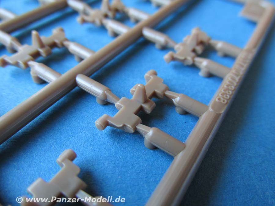 Die Seitenschürzen sind ebenfalls mit diesen Reaktiv-Blöcken versehen und hier muss der Modellbauer die einzelnen Schienen auch noch auf die Schürzen aufbringen. Dafür gibt es die Blöcke dann teilweise in Strängen zu sechs Stück. Alles in alelm sehr aufwändig aber absolut überzeugend gemacht.