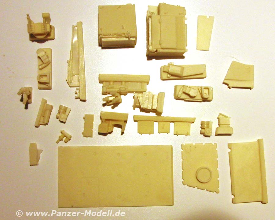 Der Guss der Teile ist wieder ganz hervorragend geraten - die Großteile sind sauber und ohne Verzug, Kleinteile sauber detailliert und ohne irgendwelche Luftbläschen oder Ausbrüche - so soll Resinguss aussehen.