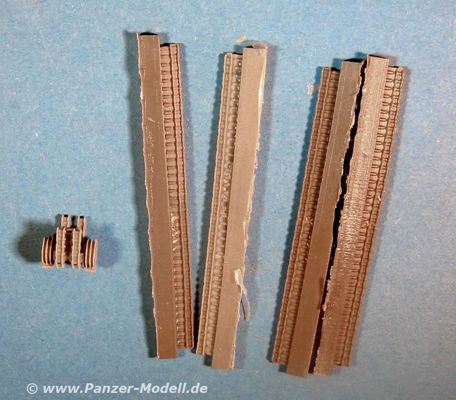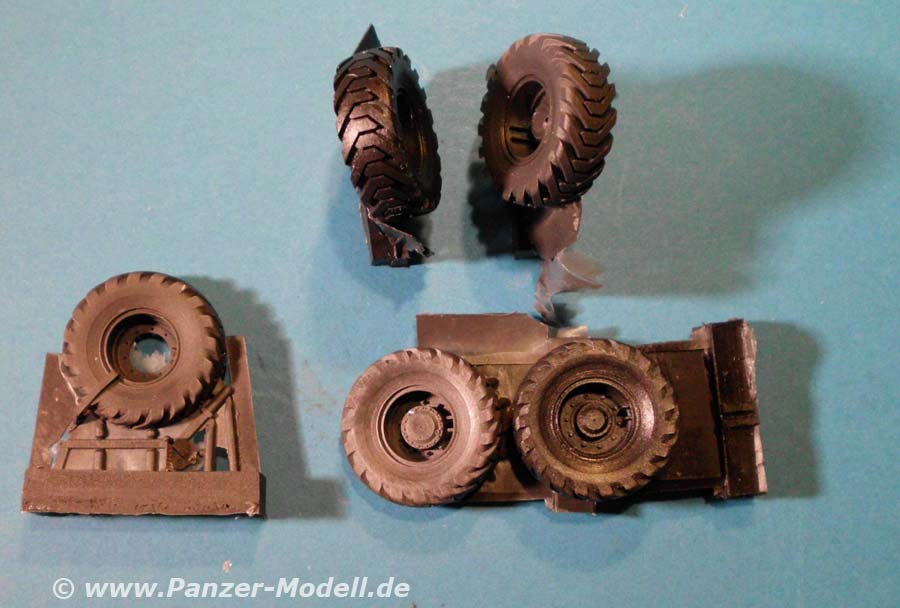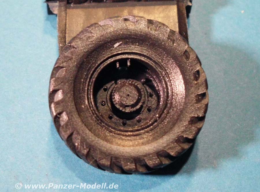 Die Räder sind genial gegossen mit feinem Profil und gerade die Felge mit den tieferliegenden Muttern sieht exzellent aus. Was durchdacht und mal für den Modellbauer gedacht ist, ist der Anguss, der nicht (wie sonst) im Profil sitzt, sondern hinten an der Innenkante der Felge wo man ihn definitiv nicht sieht.