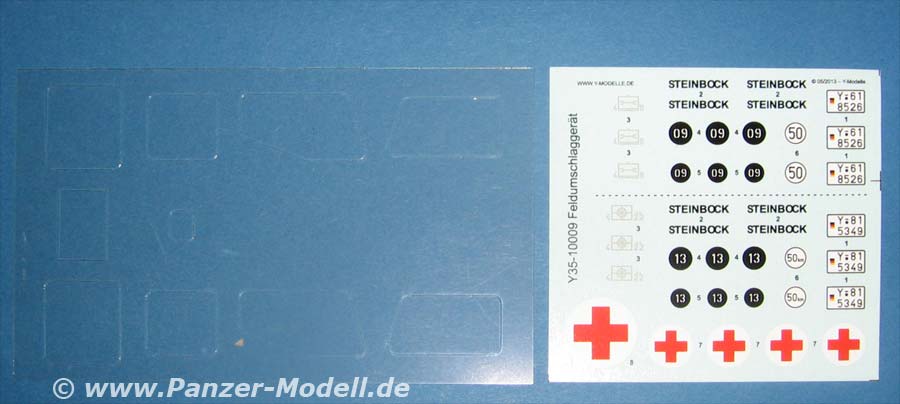 Ebenso ist ein Decalbogen enthalten der 2 Fahrzeugvarianten beinhaltet.