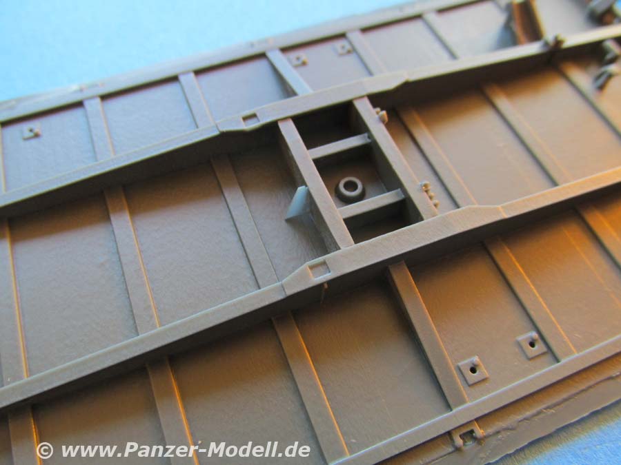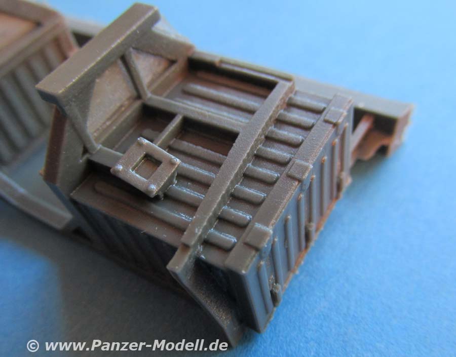 Die Kippermulde ist selbstverständlich auch komplett enthalten, die sauber und verzugsfrei gegossen sind. Die Seitenteile sind sauber, detailliert und mit den korrekten Versteifungen dargestellt. laut Bauanleitung kann man die Seitenwände auch beweglich anbauen.