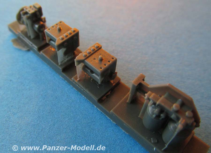Dafür findet man, wie bei Resinteilen üblich, Angüsse, die in der Regel leicht zu entfernen sind.