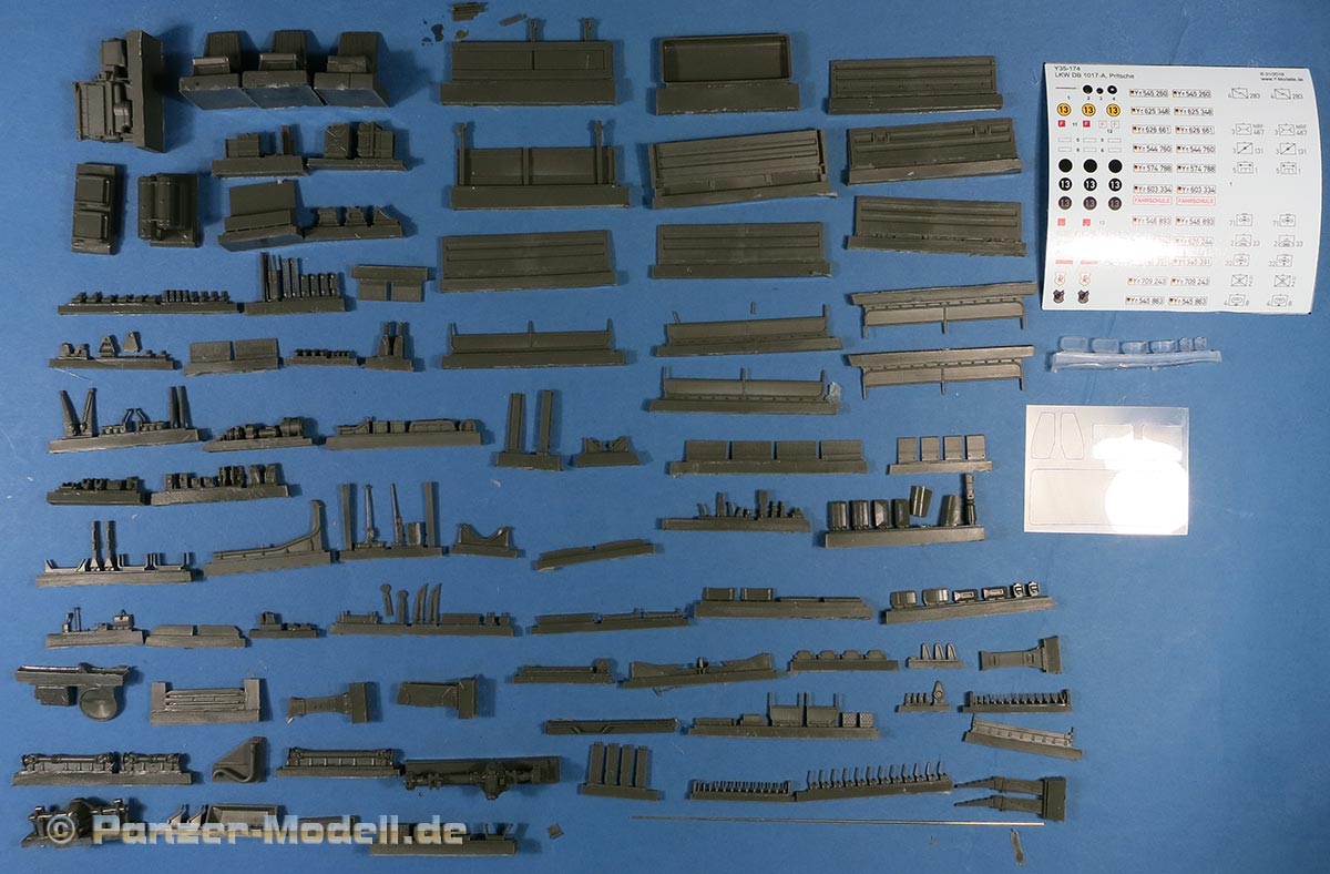 Alle Teile sind sauber und fehlerfrei und ohne Luftblasen gegossen und machen einen ausgezeichneten Eindruck. Hier und da müssen ein paar Fischhäute zwischen den Bauteilen entfernt werden, was aber recht einfach und schnell erledigt ist.
