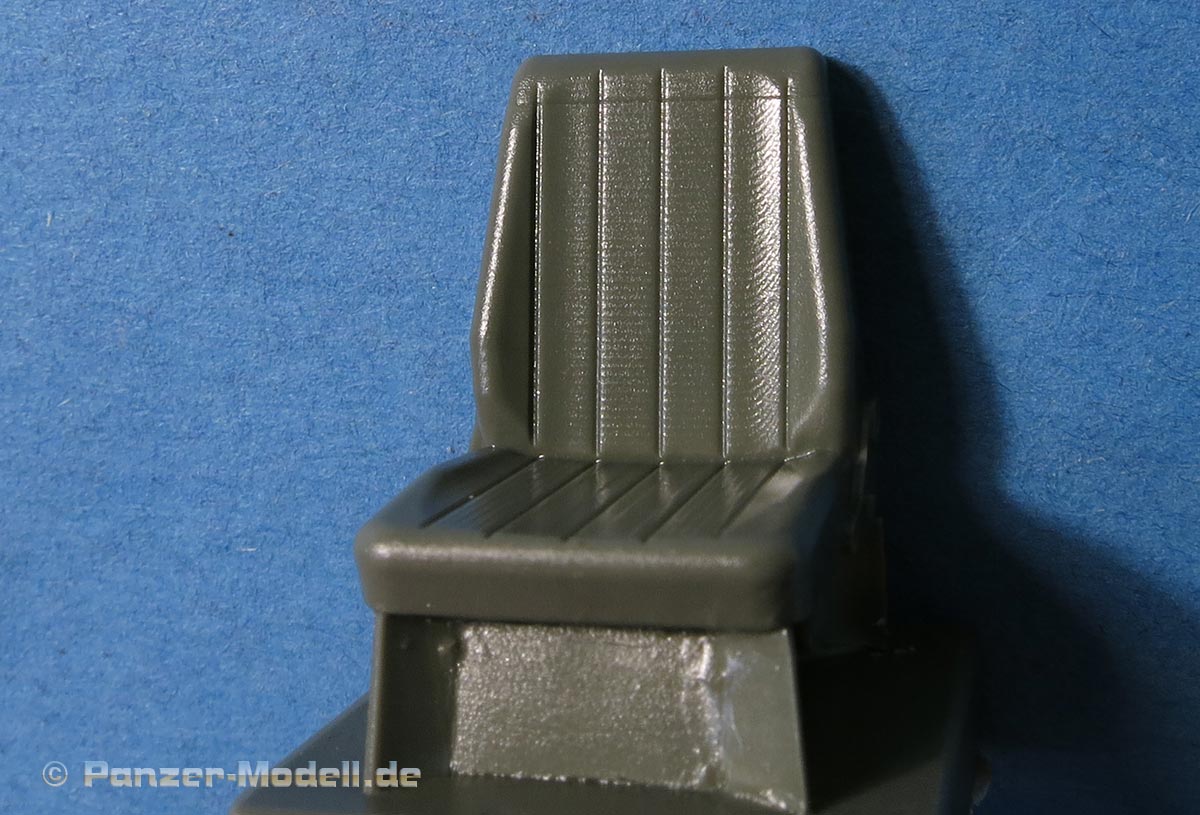 Die Kabineninneneinrichtung beinhaltet alles, was wichtig ist: Sitze in schöner Darstellung, Armaturenbrett, Lenkrad, Schaltknüppel, Türinnentaschen, usw. Der Kabinenboden zeigt schöne Details, insbeondere der markanten Rippung im Bereich der Fußstellplätze Fahrer und Beifahrer.