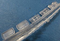 Dazu kommen die Seitenwände/Bracken - auch hier wunderschöner Guss und tolle Darstellung der markanten Rippung. Die hauchdünnen Streben obenauf liegen als Einzelteile bei, superfein gegossen - aber sicher ein echter Nervenkitzel um diese vom langen Anguss zu trennen und zu versäubern.