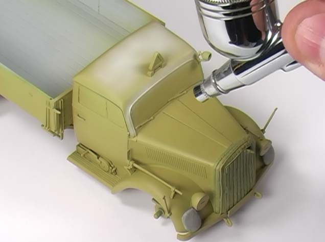 Dann geht es ans Eingemachte - insgesamt zeigt Mig an zwei Modellen (einem Opel Blitz und einem KW-2) wie man mit welchen Methoden einen schönen und verwitterten Wintertarnansprich hinbekommen kann.