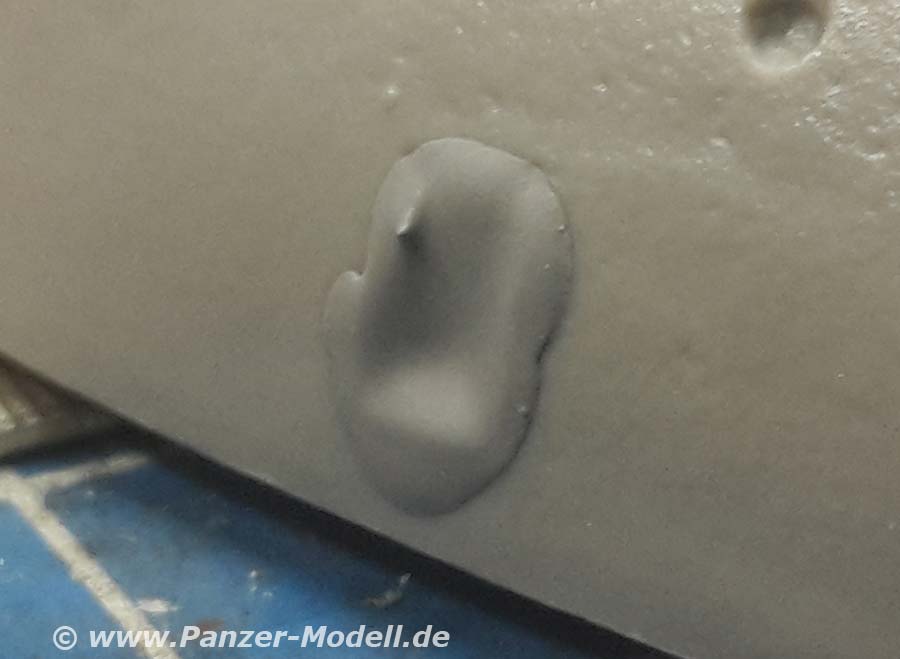 Obwohl entsprechend propagiert, kommt es bei diesem Spachtel dennoch zu etwas Schrumpfung, was aber nur bei größeren, dickeren Füllungen deutlich wird und dann aber auch druch entsprechend dickeren Auftrag kompensieren kann. Im vergleich zum weißen Spachtel finde ich, dass dieser graue weniger schrumpft und auch besser am Plastik haftet.